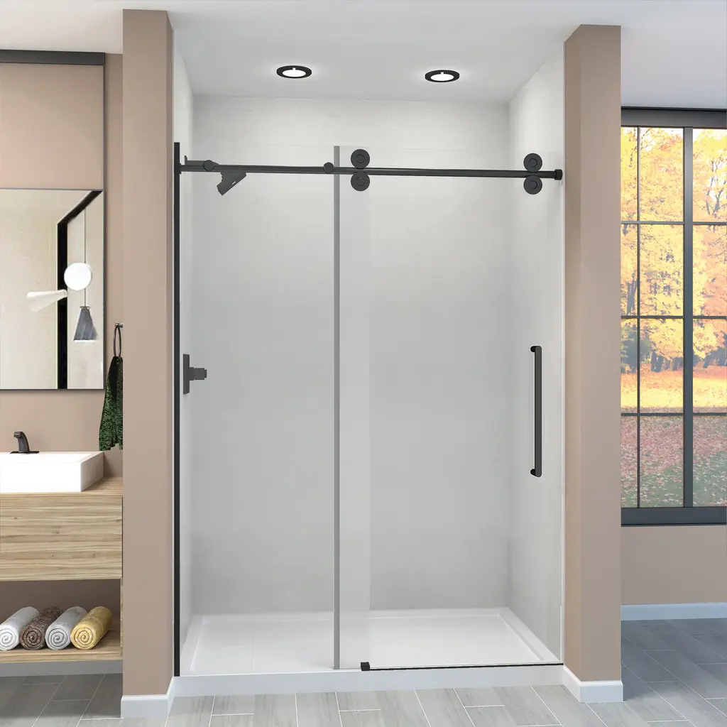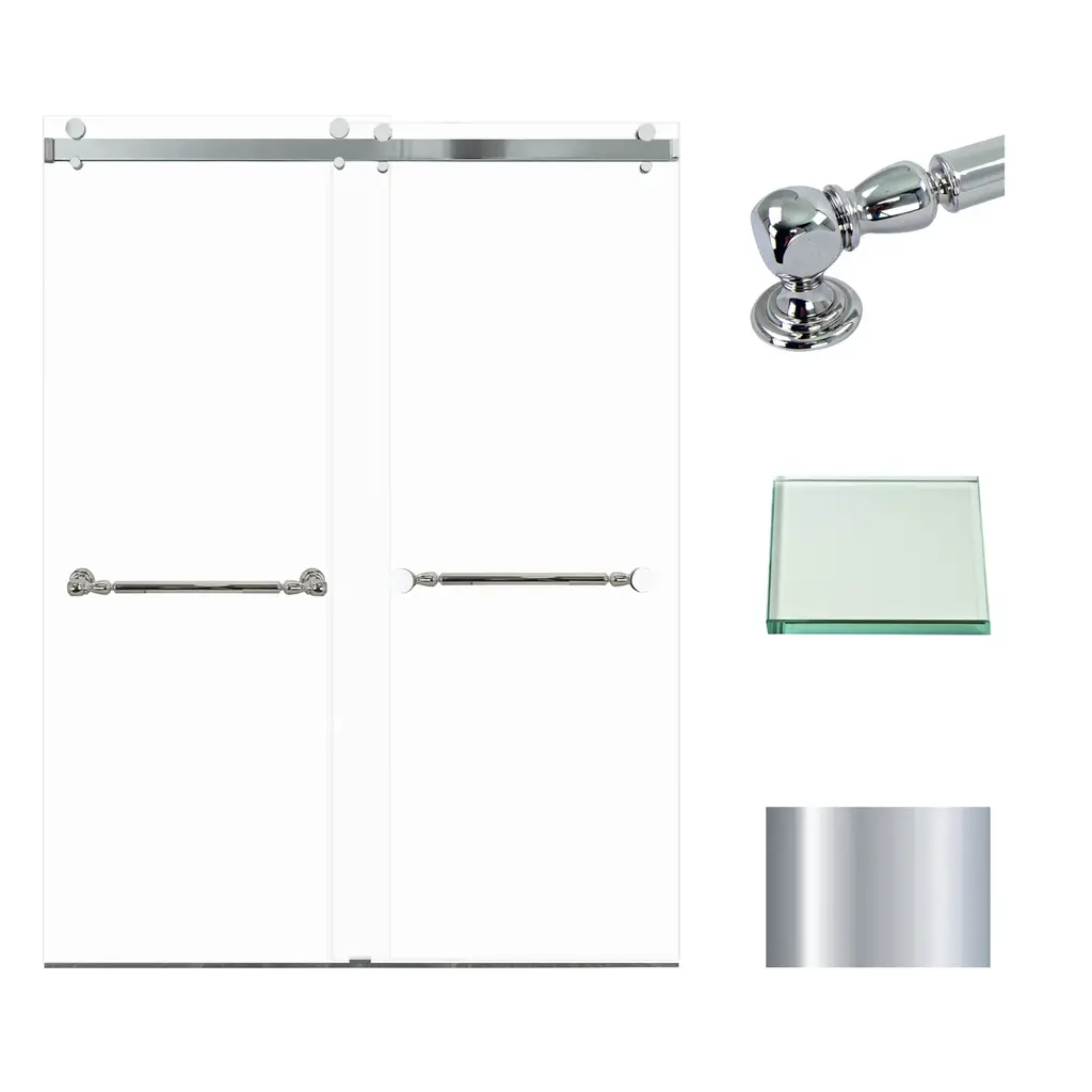 The Transolid Teegan Frameless Sliding Shower Door Collection offers an elegant, sophisticated look. It is available in 59 in. W x 80 in. H and features thick, premium 3/8 in. (10mm) clear tempered glass with professionally applied Nano clear glass coating, which provides superior dirt and water repellant and stain resistant benefits. The Teegan door provides up to 1/2 in. of out-of-plumb adjustability on each side to provide a watertight fit in your alcove. The Teegan Door is available in several desirable hardware finish options to match your bathroom's interior design and layout perfectly. Built for an alcove (3-wall) shower enclosure, this door can be installed for the door to slide on the left or the right, with the other panel remaining in a fixed position. 20 in. (500 mm from center to center) vertical shower door handles enhance the modern look. Multiple Transolid handle options are available, but this combination features the Riley handles. The Riley handles feature a unique, high-end design, adding a distinctive look to your Teegan shower door. These handles are substantial in weight and are every bit as functional as they are beautiful. Look for the matching grab bar to complete the look!Transolid TBD608010C-R Features: