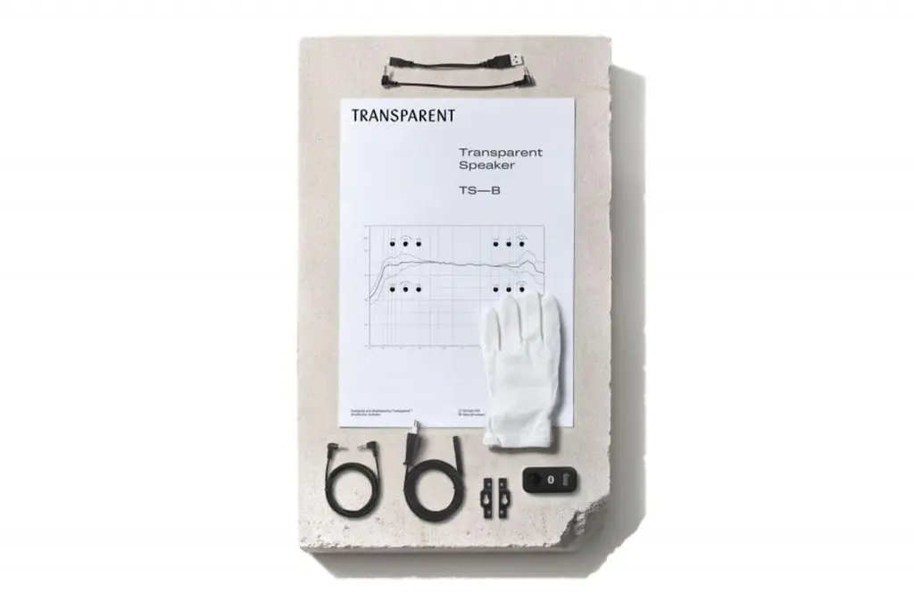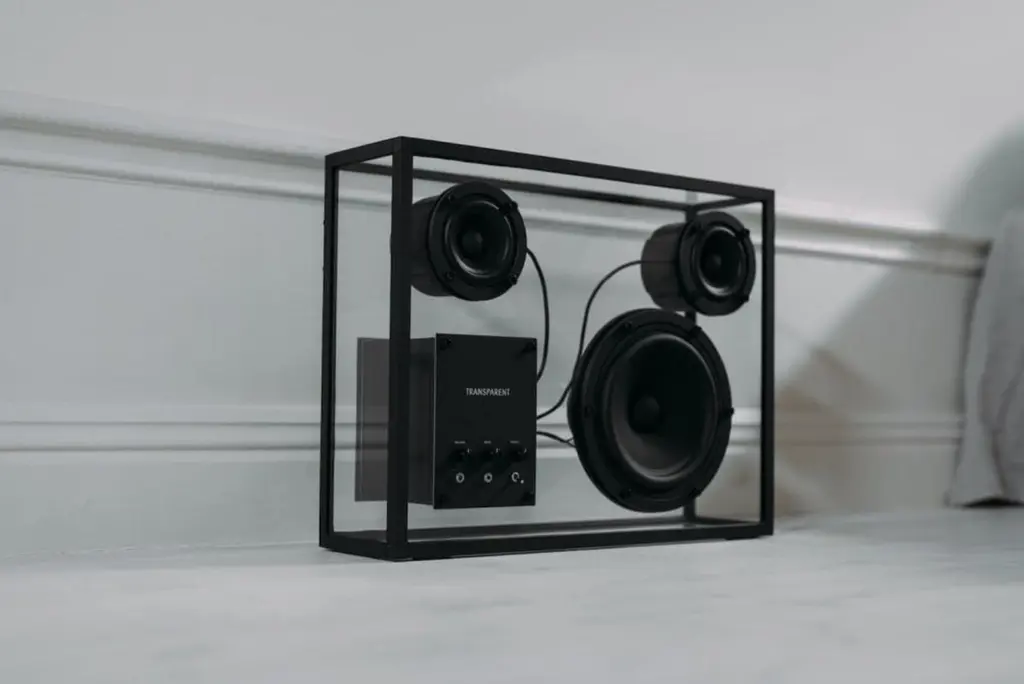 The Transparent Speaker, a revolutionary speaker that offers a truly transparent sound experience. Designed with simplicity and elegance in mind, this speaker features a unique transparent design that blends seamlessly into any room while providing an unmatched audio experience. Made with aluminium and tempered glass, this 11 kg speaker is a statement piece that commands attention in any home.Design:- Dimensions: 333 x 431 x 118 mm / 7 x 13 x 4,6 In- Weight: 11 kg / 26,5 Lbs- Materials: Aluminium and tempered glass- Colors: Black, black with red cables and white- Front Controls: Volume, bass and treble- Line in: 2 x 3,5mm (front and back)Sound:- L/R Drivers: 2 × 3’’ (Full Range)- Woofer: 1 × 6.5’’- Amplifier: Class D built-in (active)- Rated power: 100-120W- Sealed Cabinet Volume: 10,2 l- Frequency Response: 35 Hz - 20 kHz ±5dB- High Quality Digital Signal Processing (DSP)- Recommended room size: ≈ 70 kvmA version equipped with integrated Wi-Fi connectivity is also available, please inquire with us.
