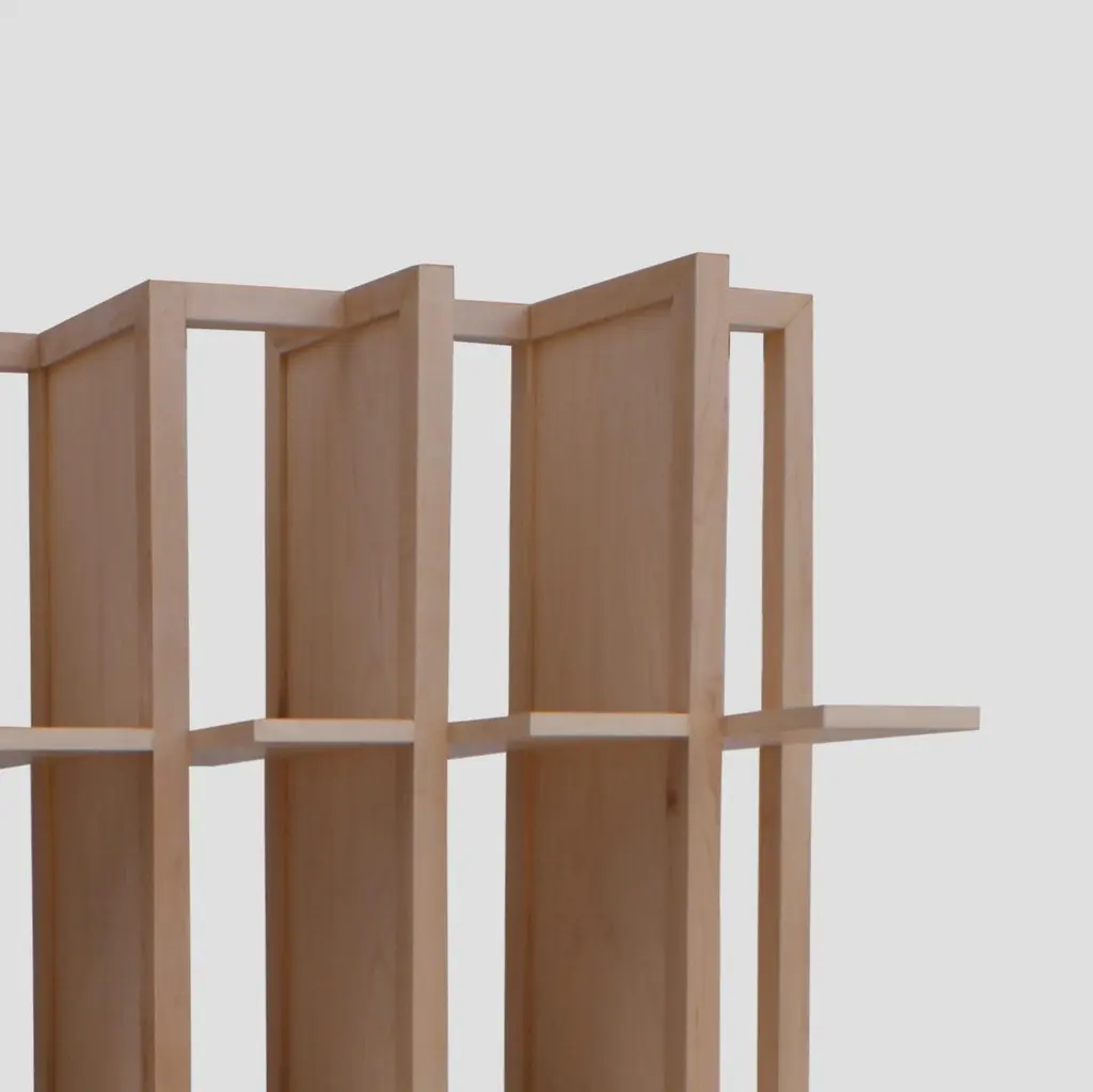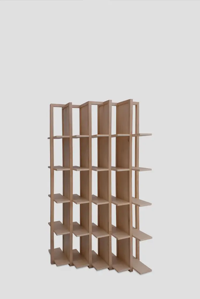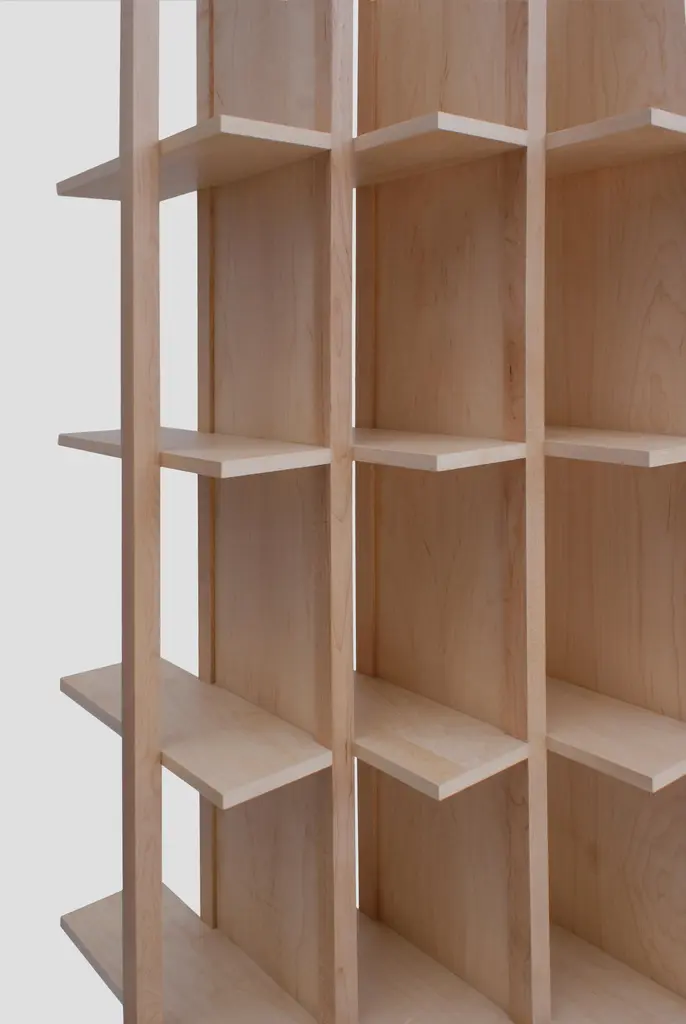Transversal shelves by FOAMDimensions: D 125 x W 45 x H 200 cmMaterials: maple wood.Available in other woods.Bookshelf made of maple, walnut or tzalam wood.Foam is a design and visual experimentation company in Mexico City that was born at the end of 2012, specializing in design, creativity, branding and innovation.BREUER is a company specializing in the design and manufacture of custom furniture and spaces, which began in 1993 in Mexico City under the direction of Arturo Verástegui.Since the beginning of the nineties Arturo Verástegui, founder of the company, began his career in the world of furniture: beginning with the distribution and manufacture of residential furniture and with more than a decade of experience in commercial furniture, BREUER was born with a strong industrial and trade vocation.That is only one part of our history, the other began almost 100 years ago with the architect and designer Marcel Breuer, from whom our name arises. But it is not only the name that we take from Marcel Breuer, but also his modernist ideals and the desire to implement the latest in manufacturing technology is his designs.