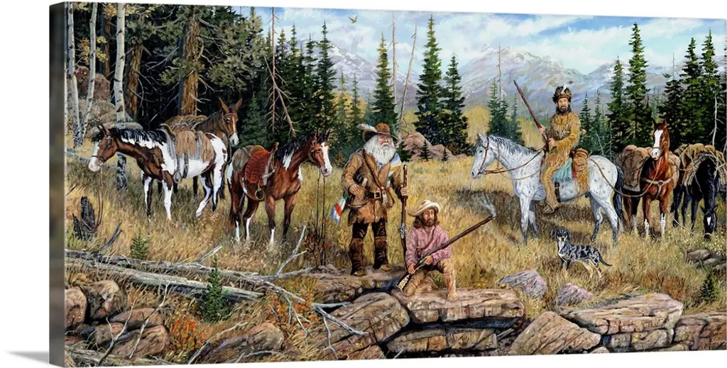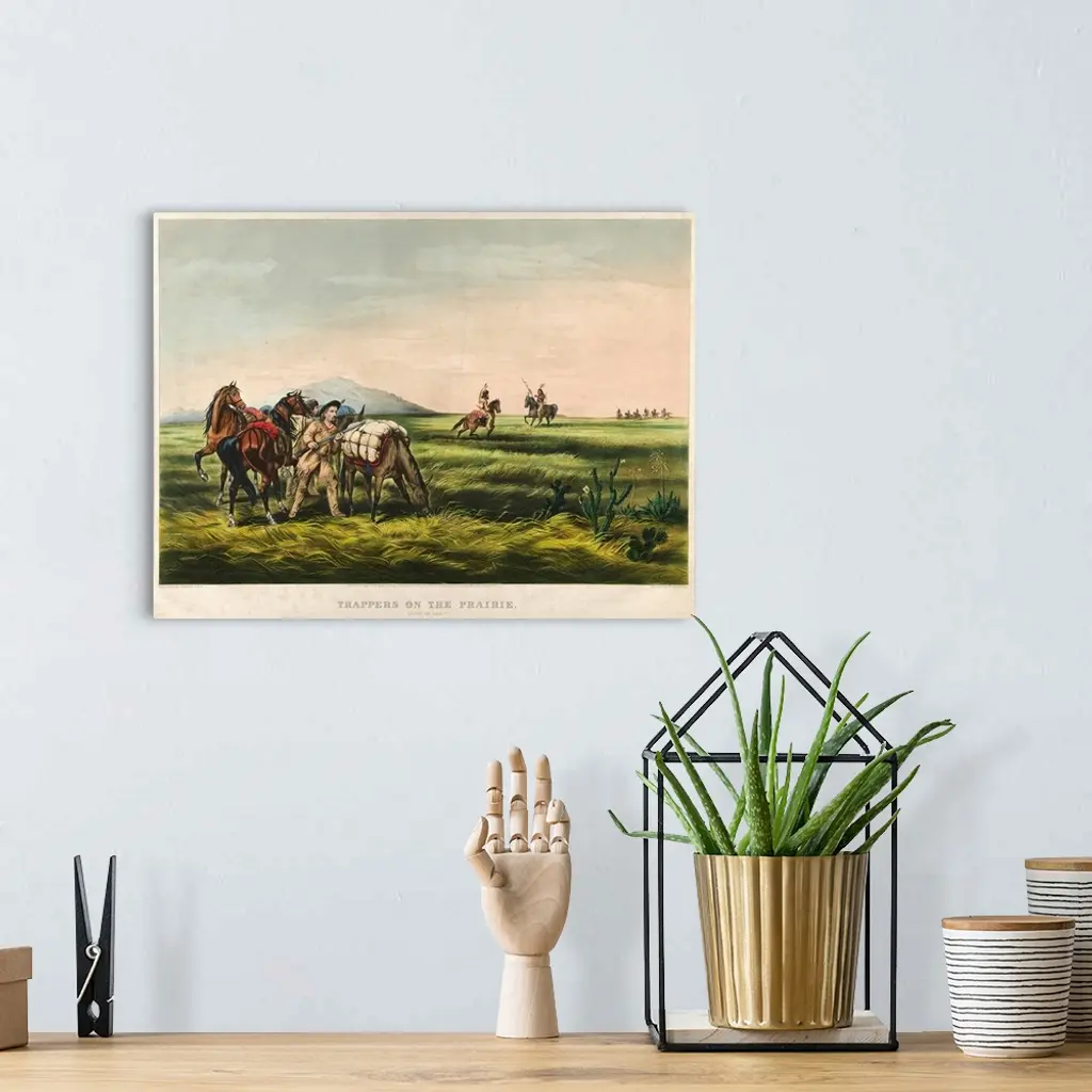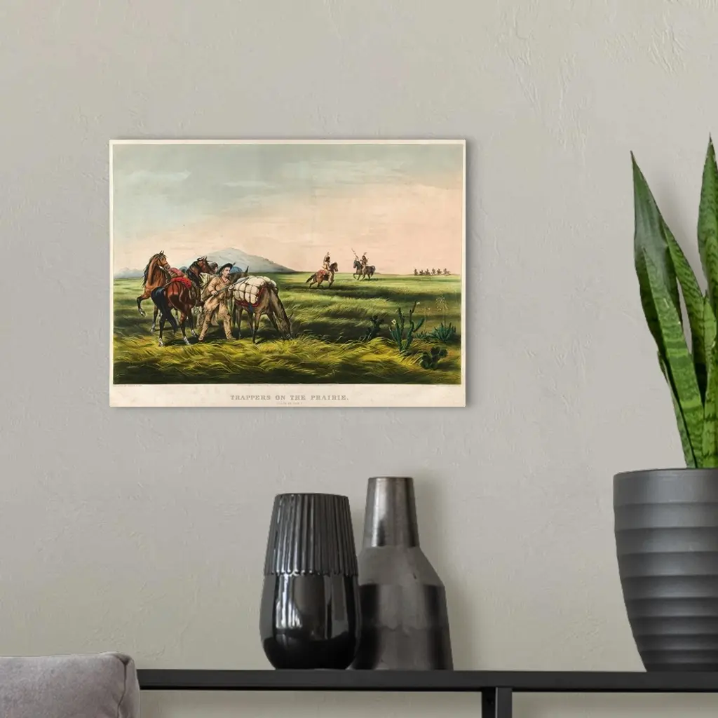 Trappers on the Prairie / Peace or War?, 1866 (originally colour lithograph) by Currier, N. (1813-88) and Ives, J.M. (1824-95)