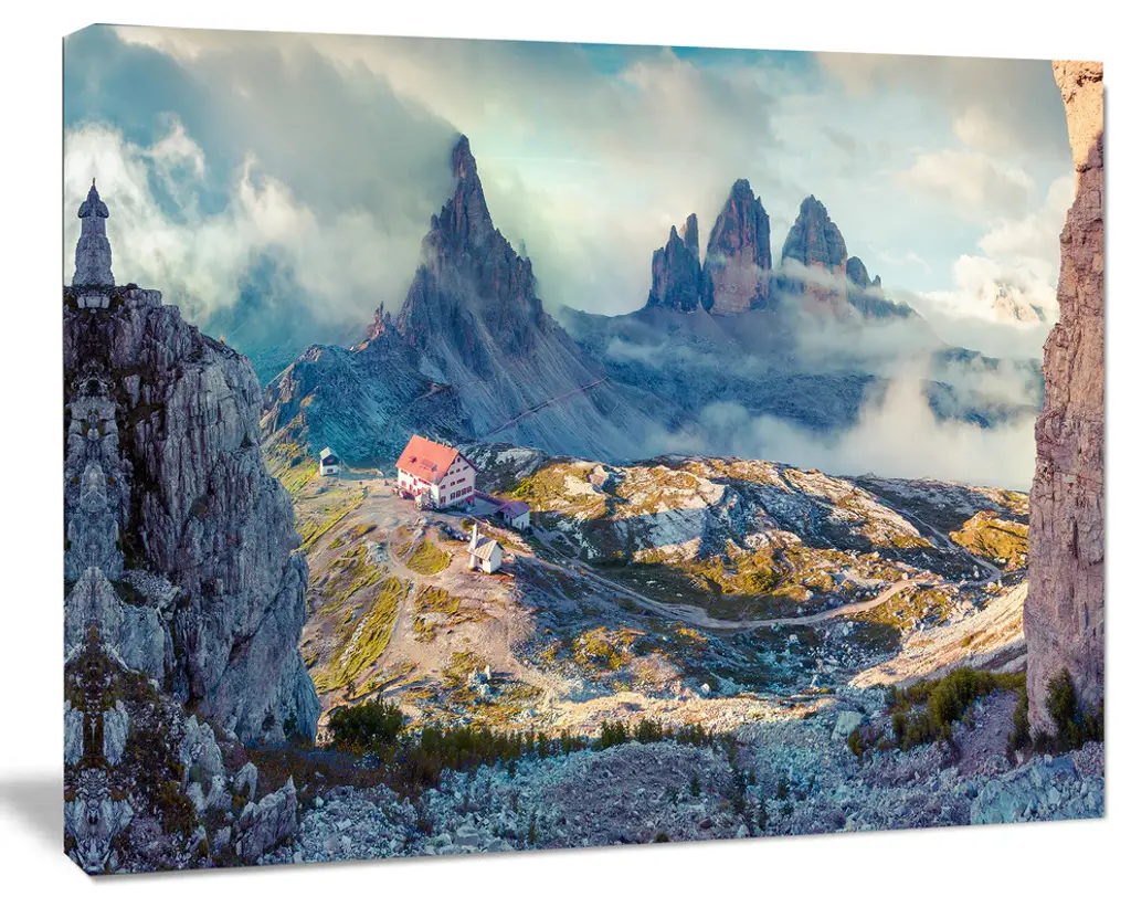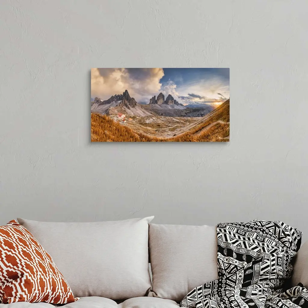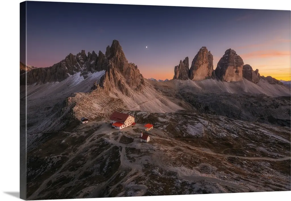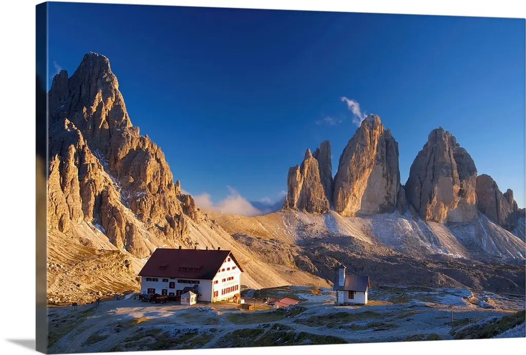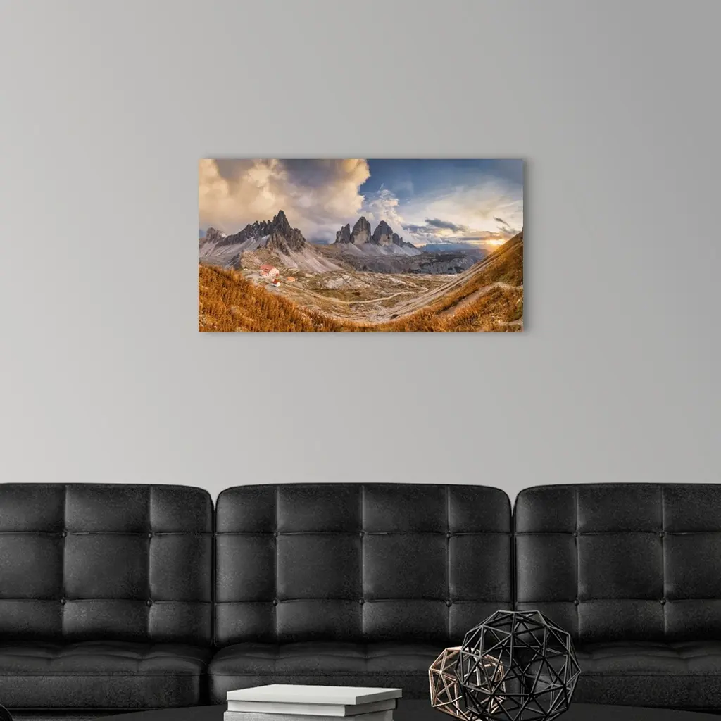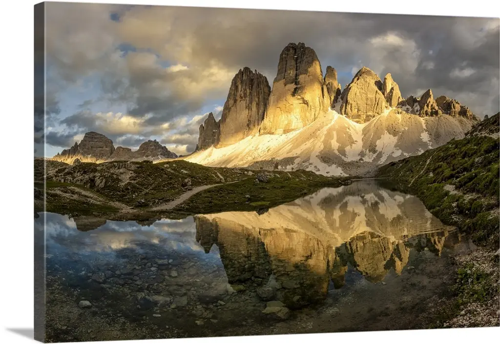 Tre Cime Di Lavaredo At Sunset, Dolomites, South Tyrol, Italy wall art for home and office decor. Discover canvas art prints, photos, mural, big canvas art and framed wall art in GreatBigCanvas.com's varied collections.