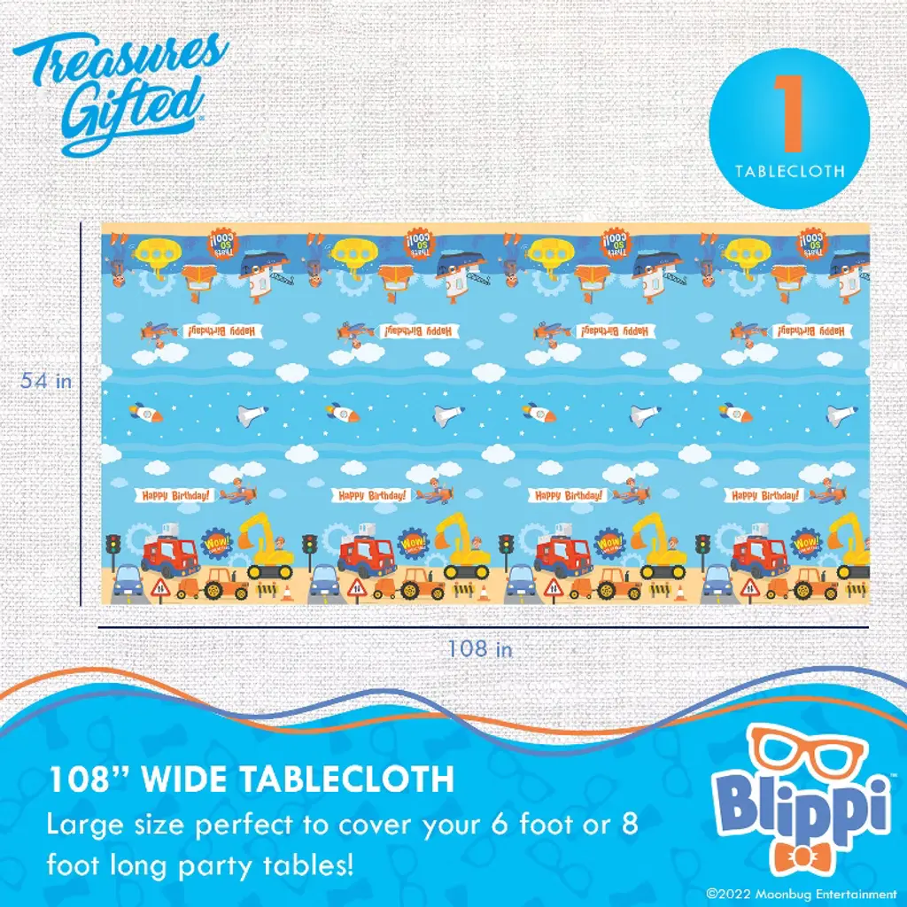 Get the party started with our Blippi party decorations! With its brightly colored design featuring your child's best friend Blippi and all of his favorite vehicles, our high-quality decorations are the perfect addition for creating a Blippi themed celebration. Check out our store for more authentic Blippi birthday decorations, including backdrops, cake toppers, banners, and more!! This Blippi party supplies kit for 16 guests includes: (1) 54in x 108in tablecloth (16) 9in dinner plates (16) 7in dessert plates (16) 9oz paper cups (16) 6.5in luncheon napkins