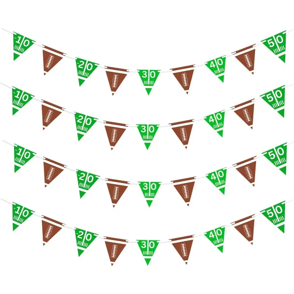 Score a touchdown with our football decorations! Our football birthday party supplies are the perfect addition to your football theme party, and it's sure to impress your guests. Made from high-quality materials, it's durable and long-lasting, ensuring that it can be used for multiple celebrations. The banner is preassembled and comes pre-strung for easy hanging. Check out our store for more kids football party decorations, including backdrops, cake toppers, balloons, and more! This football happy birthday banner features: Pre-strung pennant banner comes ready for decorating and hanging! (2) pennant banner comes with 12 beautifully designed flags each measures 11.6 x 9.6 inch . All pennant flags are made of coated durable flexible paper so they flutter like butterflies in the wind!