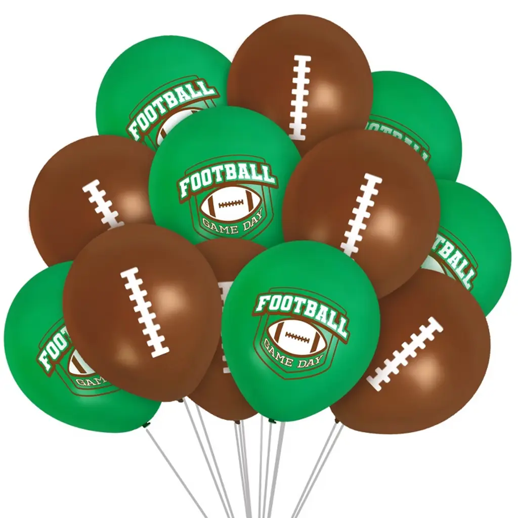 Score a touchdown with our football party decorations! Our football-themed balloons are the perfect addition to your sports-themed party, and it's sure to impress your guests. Don't forget to check out our store for more football-themed party supplies, including plates, cups, balloons, and more! This football party balloons kit features: (24) 12in latex balloons 22 yards of ribbon