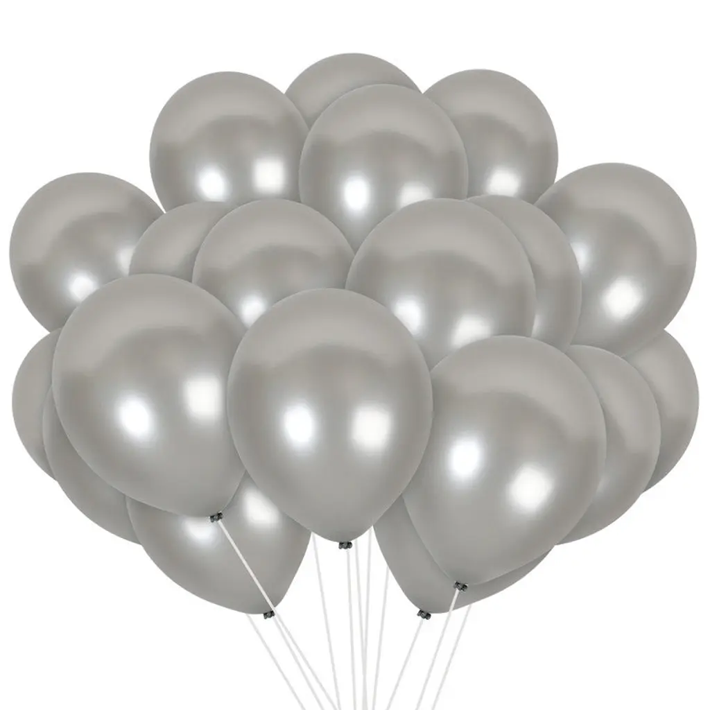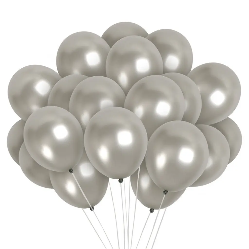 Elevate your event with our silver helium balloons - the perfect touch of elegance and charm! Fashioned from premium latex, our metallic silver balloons exhibit remarkable durability suitable for both indoor and outdoor settings, and can hold water or helium with ease. Whether you're celebrating a birthday, baby shower, wedding, or any special occasion, our silver birthday balloons will effortlessly infuse a touch of joy and sophistication. Let your creativity soar for your celebration with our silver party decorations. This happy birthday balloons silver kit features: (72) 12 inch silver latex balloons (44) yards of curling ribbon
