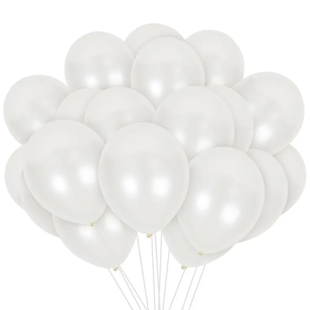 Elevate your event with our white helium balloons - the perfect touch of elegance and charm! Fashioned from premium latex, our white wedding balloons exhibit remarkable durability suitable for both indoor and outdoor settings, and can hold water or helium with ease. Whether you're celebrating a birthday, baby shower, wedding, or any special occasion, our white water balloons will effortlessly infuse a touch of joy and sophistication. Let your creativity soar for your celebration with our plain white helium balloons. This white pearl balloons kit features: (72) 12 inch white latex balloons (44) yards of curling ribbon