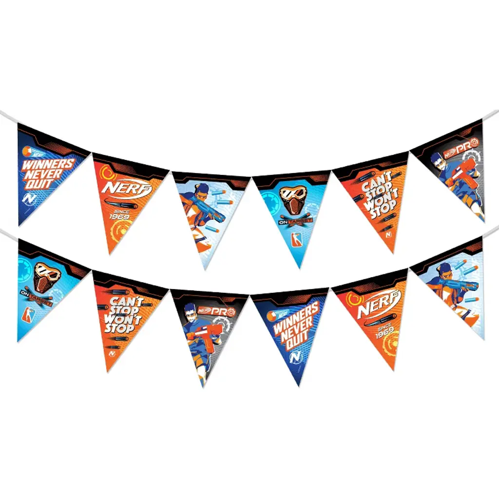 Take your party into uncharted territory with our Transformers party decorations. Featuring the heroic Autobots and evil Decepticons in vibrant colors, this banner set is the perfect decoration for any Transformers theme party. Made with high-quality materials, it's durable and long-lasting, ensuring that it can be used for multiple celebrations. Both our banner and pennants are preassembled and come pre-strung for easy hanging. Check out our store for more authentic Transformers party supplies, including cake toppers, backdrops, plates, and more!! This Transformers happy birthday banner features: Pre-strung pennant banner comes ready for decorating and hanging! (1) pennant banner comes with 12 beautifully designed flags each measures 11.6 x 9.6 inch . All pennant flags are made of coated durable flexible paper so they flutter like butterflies in the wind!