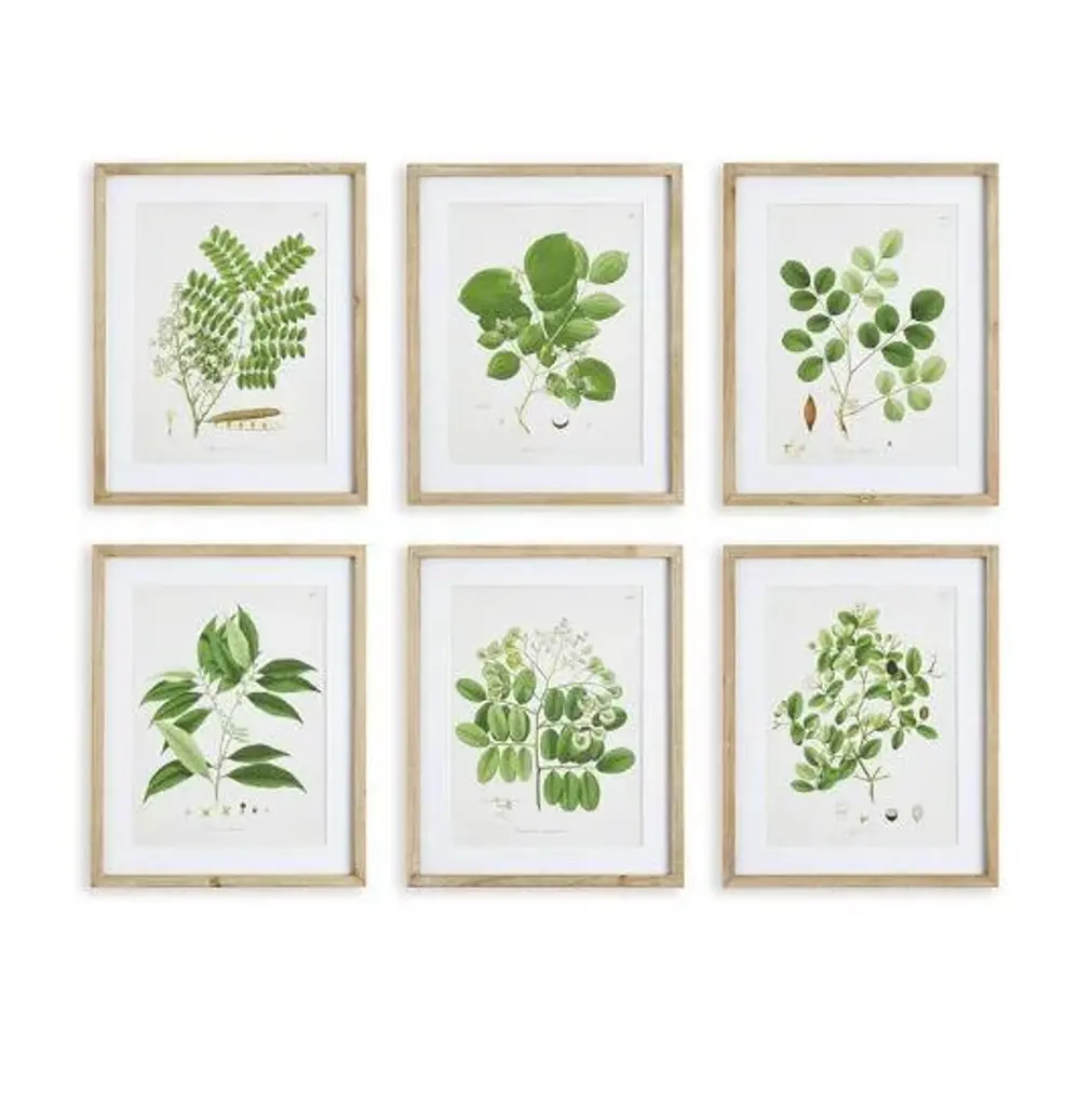 Tree Leaf Study In Wood Frames, Set Of 6
