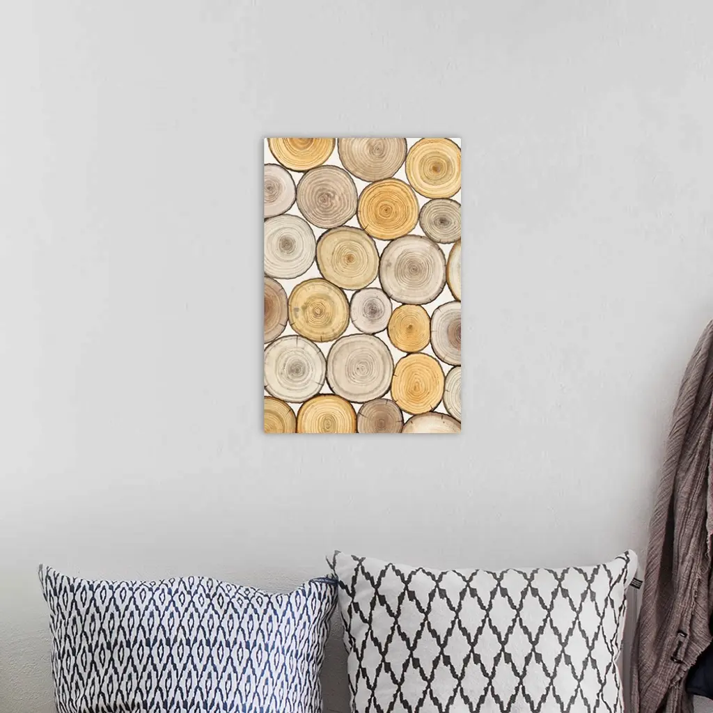 Assortment of tree trunk cross-sections with prominent rings.