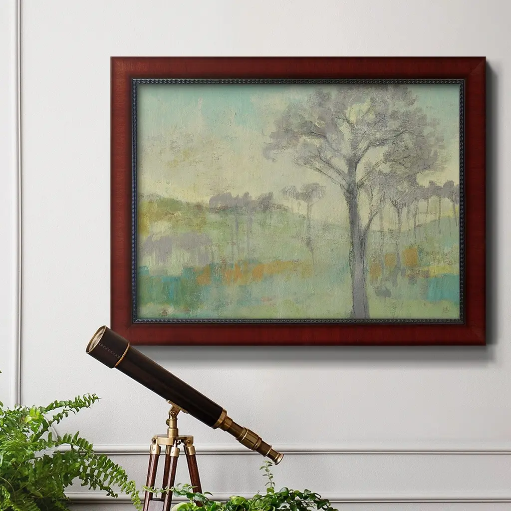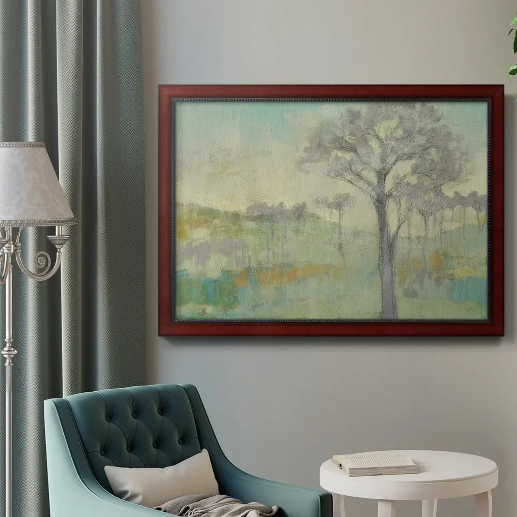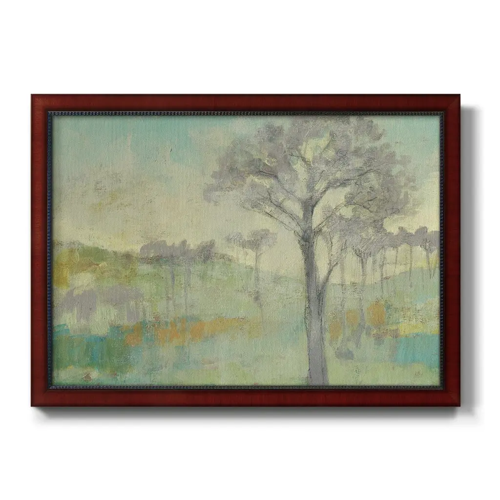 Tree Stand I Premium Framed Canvas- Ready to Hang A Premium Framed Canvas created to last. Framed in distressed wood and available in an array of sizes and colors Featuring a beveled a solid wood stretcher bar, each piece comes ready to hand 3 SIZES AVAILABLE 16''X20'' - Overall Size 18'X27'' - Overall Size 24''x36'' - Overall Size Each piece is made to order. Each piece comes with hanging hardware. Made in the USA Ready to Hang Giclee Paper Print Acrylic Glass Beveled Matt Board