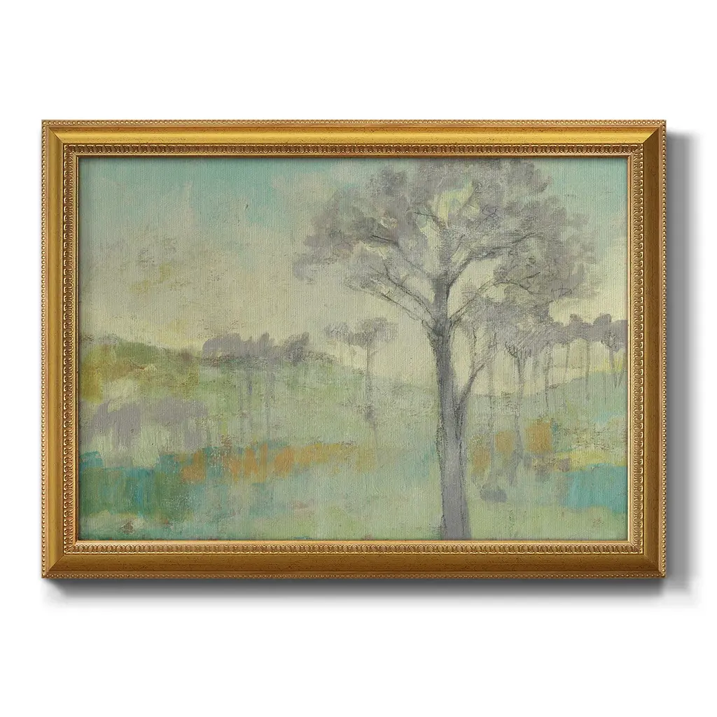Tree Stand I Premium Framed Canvas- Ready to Hang A Premium Framed Canvas created to last. Framed in distressed wood and available in an array of sizes and colors Featuring a beveled a solid wood stretcher bar, each piece comes ready to hand 3 SIZES AVAILABLE 16''X20'' - Overall Size 18'X27'' - Overall Size 24''x36'' - Overall Size Each piece is made to order. Each piece comes with hanging hardware. Made in the USA Ready to Hang Giclee Paper Print Acrylic Glass Beveled Matt Board