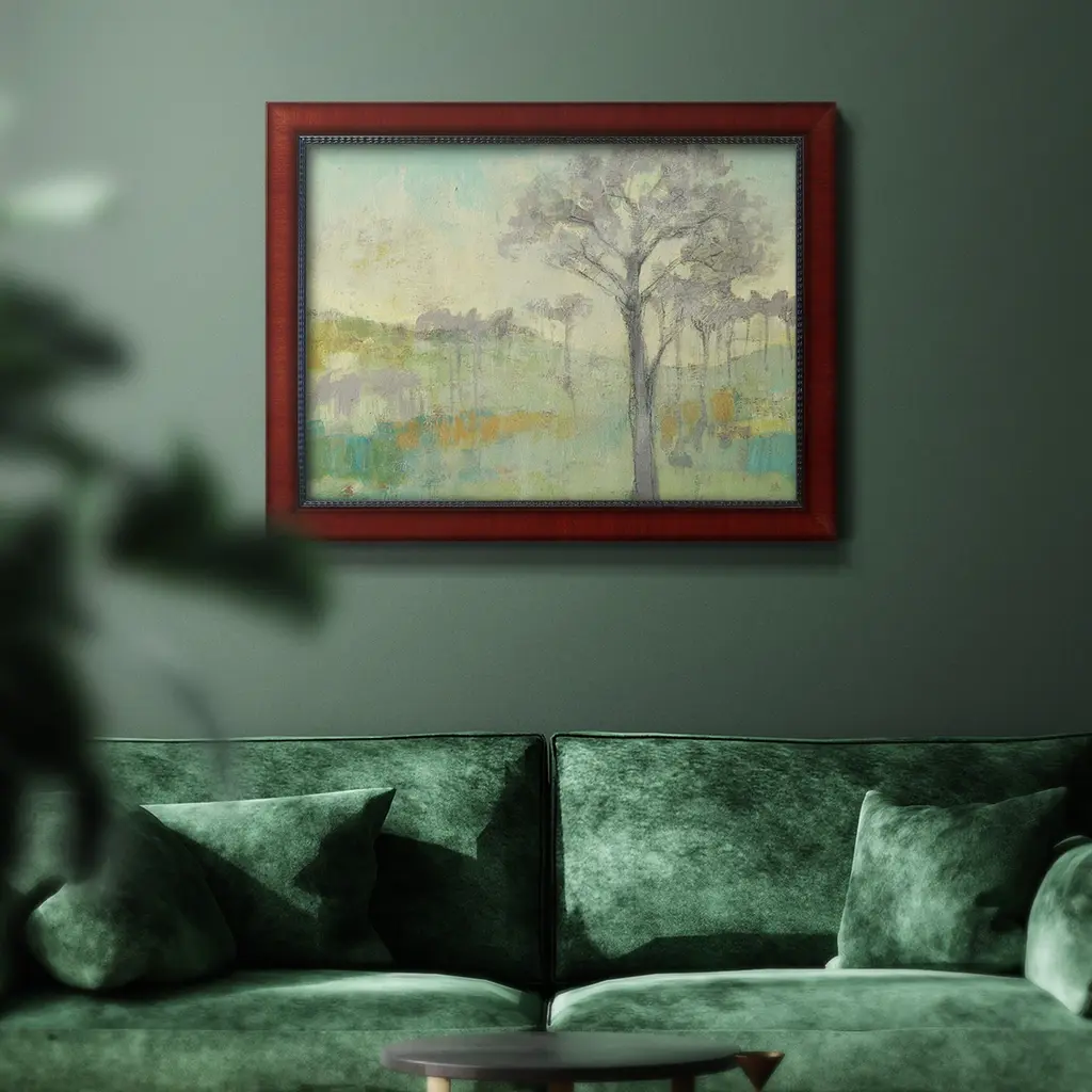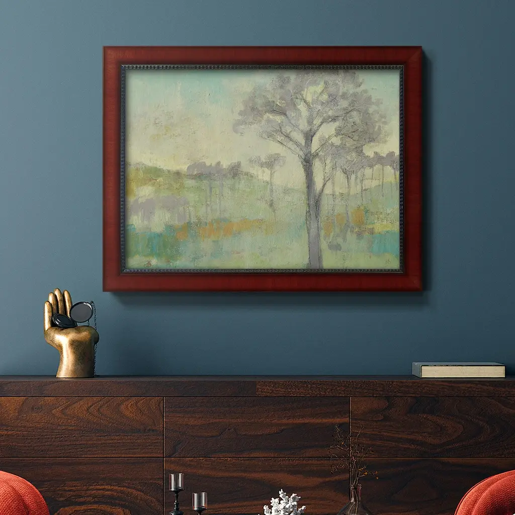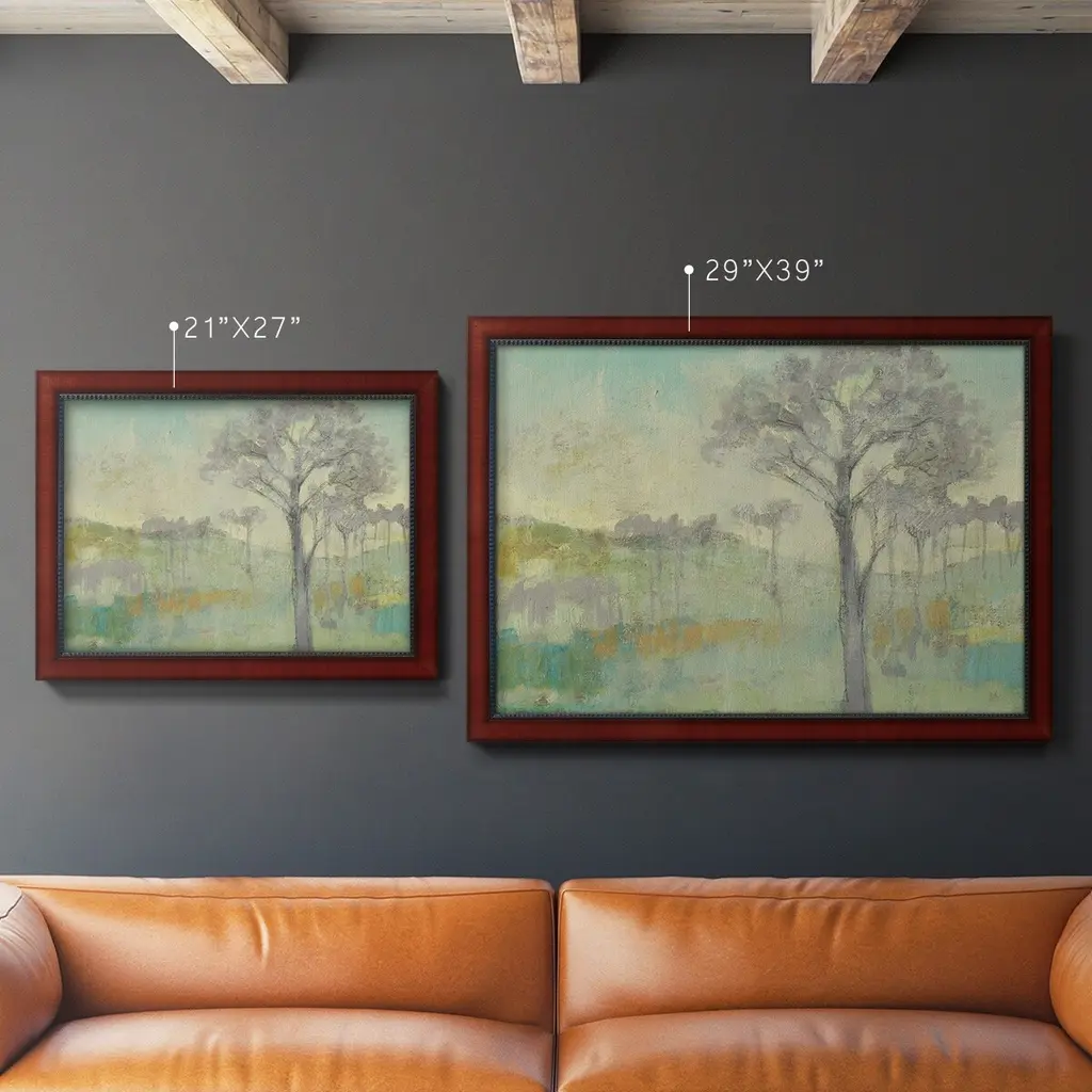 Tree Stand I Premium Framed Canvas- Ready to Hang A Premium Framed Canvas created to last. Framed in distressed wood and available in an array of sizes and colors Featuring a beveled a solid wood stretcher bar, each piece comes ready to hand 3 SIZES AVAILABLE 16''X20'' - Overall Size 18'X27'' - Overall Size 24''x36'' - Overall Size Each piece is made to order. Each piece comes with hanging hardware. Made in the USA Ready to Hang Giclee Paper Print Acrylic Glass Beveled Matt Board