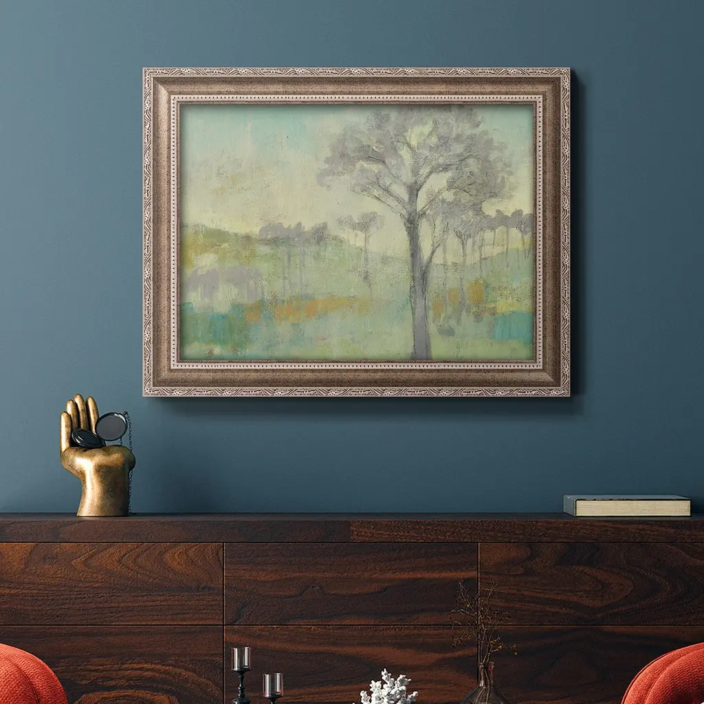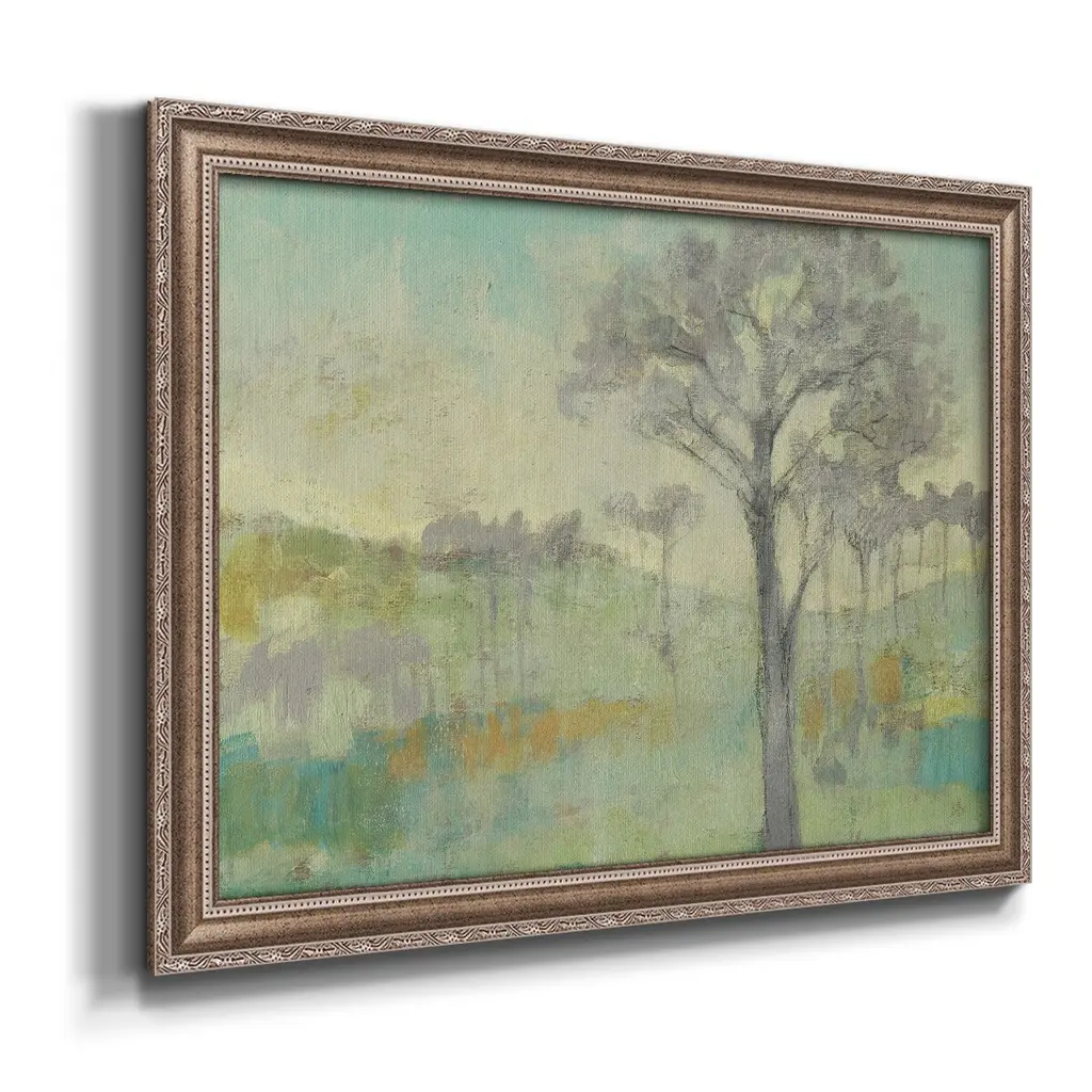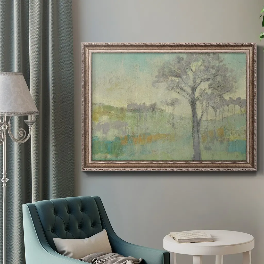 Tree Stand I Premium Framed Canvas- Ready to Hang A Premium Framed Canvas created to last. Framed in distressed wood and available in an array of sizes and colors Featuring a beveled a solid wood stretcher bar, each piece comes ready to hand 3 SIZES AVAILABLE 16''X20'' - Overall Size 18'X27'' - Overall Size 24''x36'' - Overall Size Each piece is made to order. Each piece comes with hanging hardware. Made in the USA Ready to Hang Giclee Paper Print Acrylic Glass Beveled Matt Board