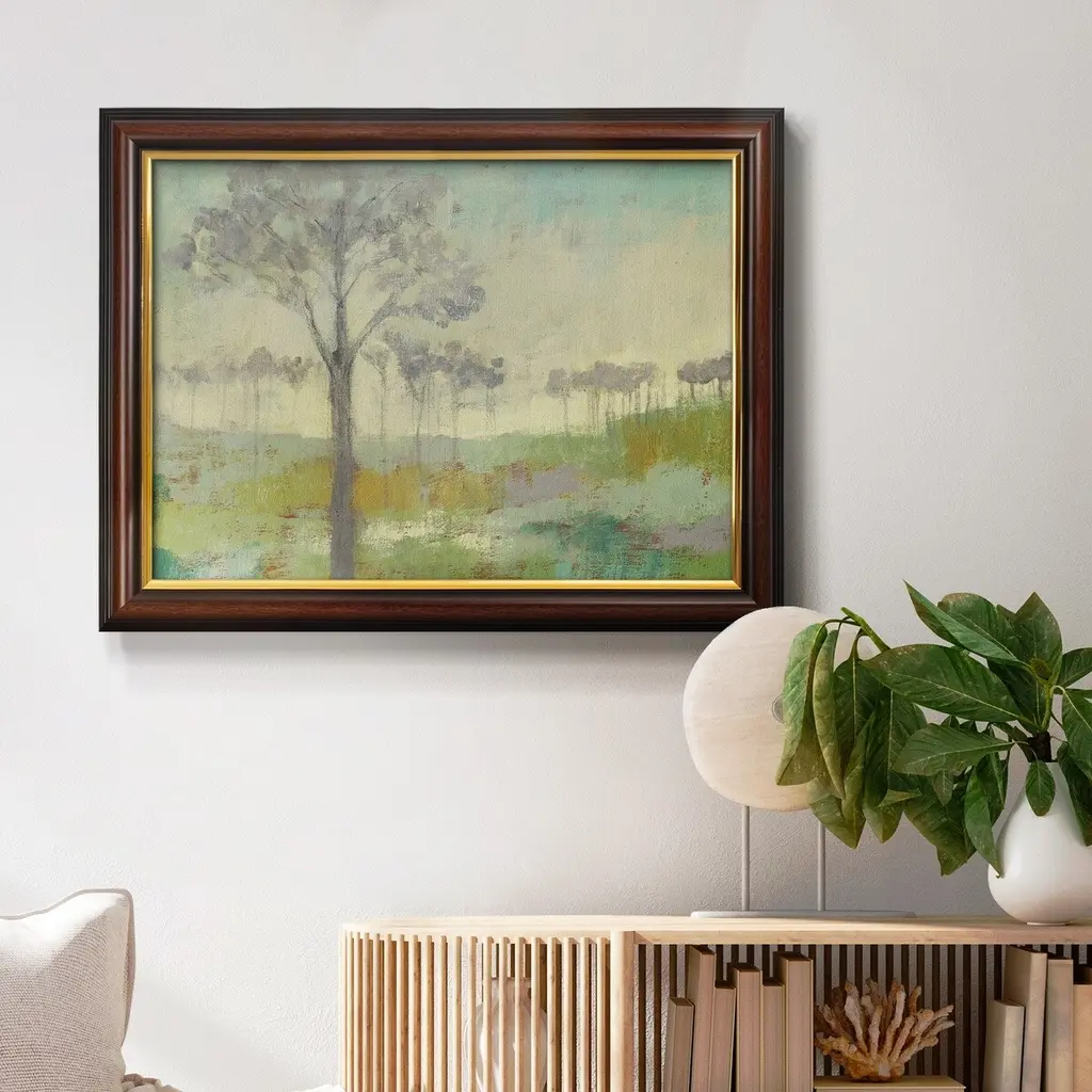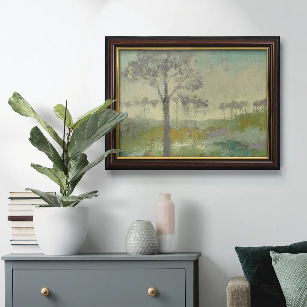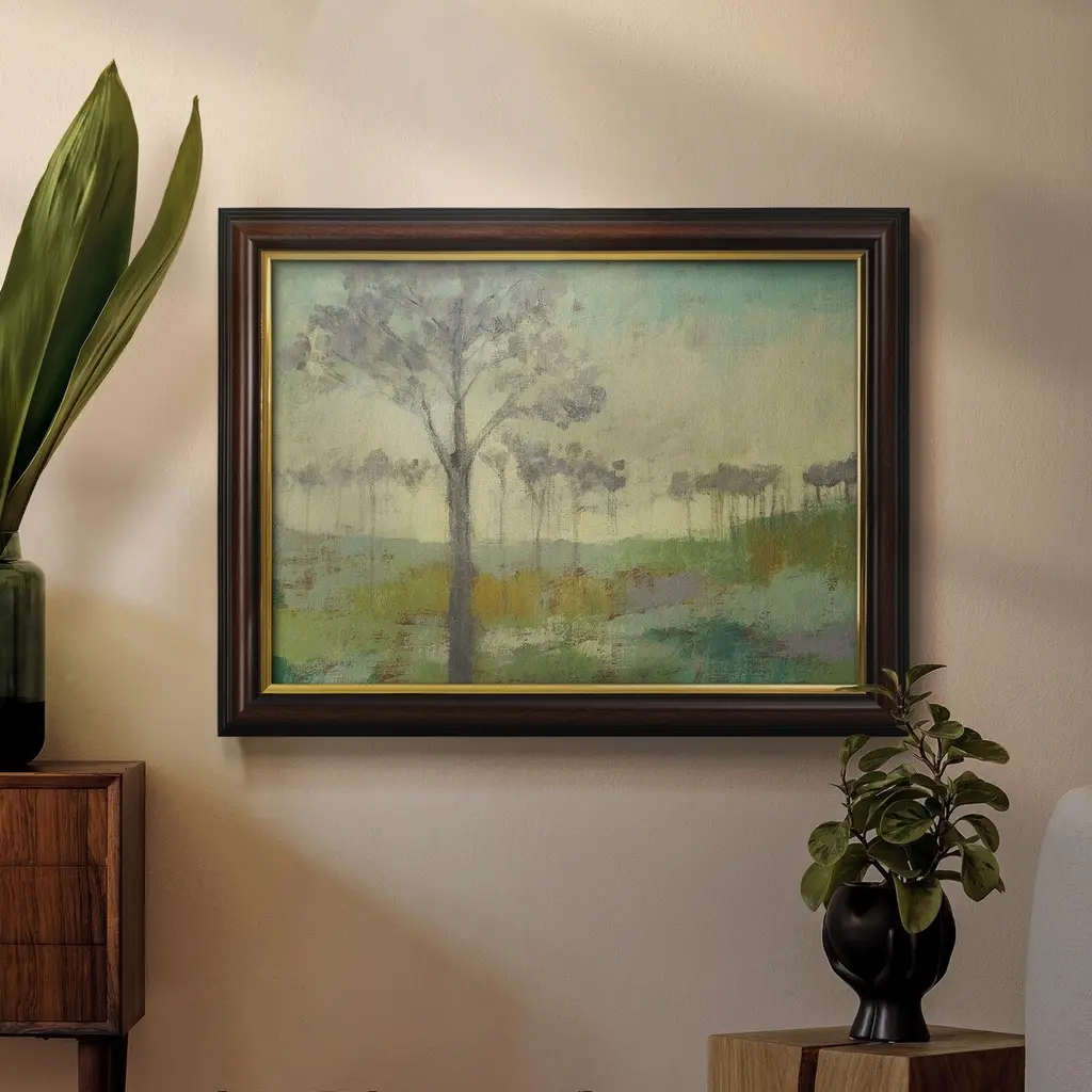 Tree Stand II Premium Framed Canvas- Ready to Hang A Premium Framed Canvas created to last. Framed in distressed wood and available in an array of sizes and colors Featuring a beveled a solid wood stretcher bar, each piece comes ready to hand 3 SIZES AVAILABLE 16''X20'' - Overall Size 18'X27'' - Overall Size 24''x36'' - Overall Size Each piece is made to order. Each piece comes with hanging hardware. Made in the USA Ready to Hang Giclee Paper Print Acrylic Glass Beveled Matt Board