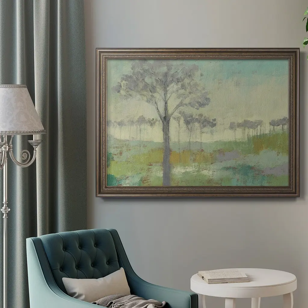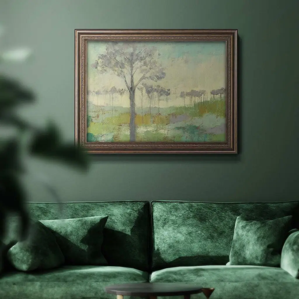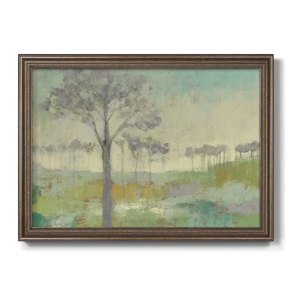 Tree Stand II Premium Framed Canvas- Ready to Hang A Premium Framed Canvas created to last. Framed in distressed wood and available in an array of sizes and colors Featuring a beveled a solid wood stretcher bar, each piece comes ready to hand 3 SIZES AVAILABLE 16''X20'' - Overall Size 18'X27'' - Overall Size 24''x36'' - Overall Size Each piece is made to order. Each piece comes with hanging hardware. Made in the USA Ready to Hang Giclee Paper Print Acrylic Glass Beveled Matt Board