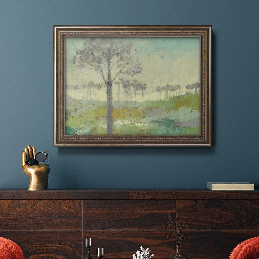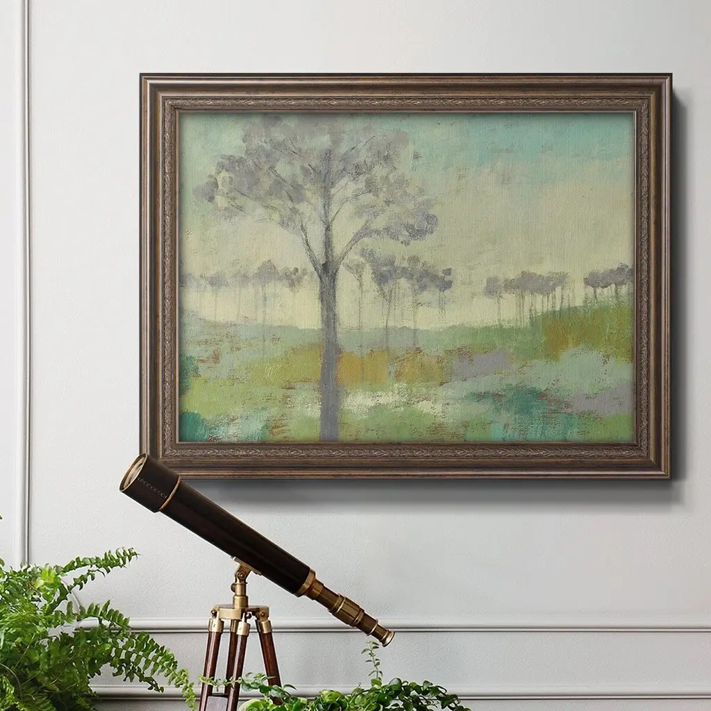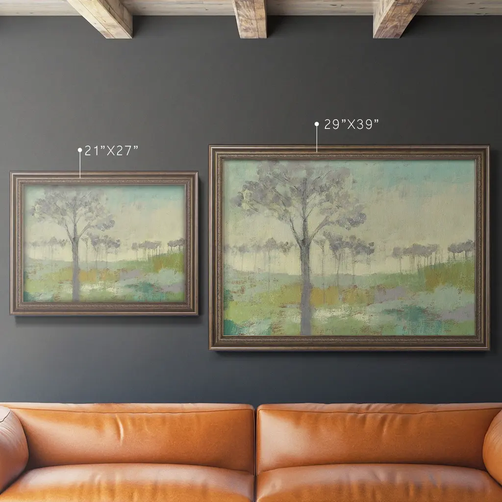 Tree Stand II Premium Framed Canvas- Ready to Hang A Premium Framed Canvas created to last. Framed in distressed wood and available in an array of sizes and colors Featuring a beveled a solid wood stretcher bar, each piece comes ready to hand 3 SIZES AVAILABLE 16''X20'' - Overall Size 18'X27'' - Overall Size 24''x36'' - Overall Size Each piece is made to order. Each piece comes with hanging hardware. Made in the USA Ready to Hang Giclee Paper Print Acrylic Glass Beveled Matt Board