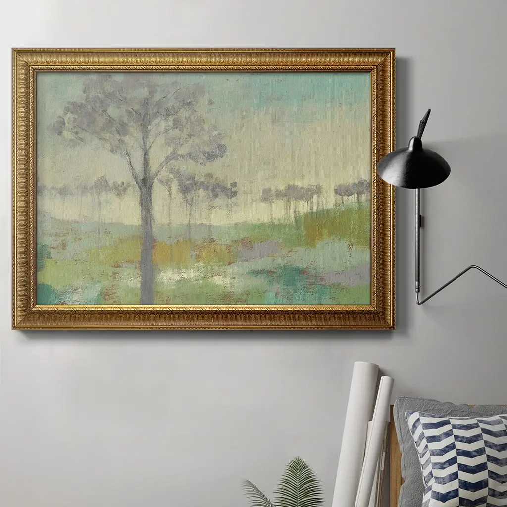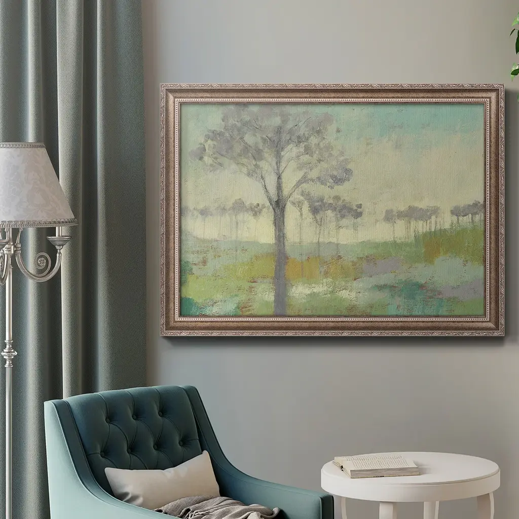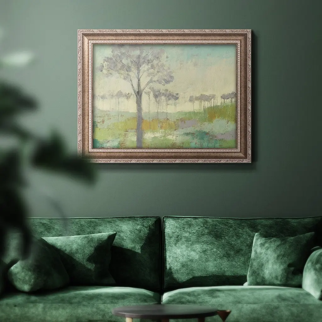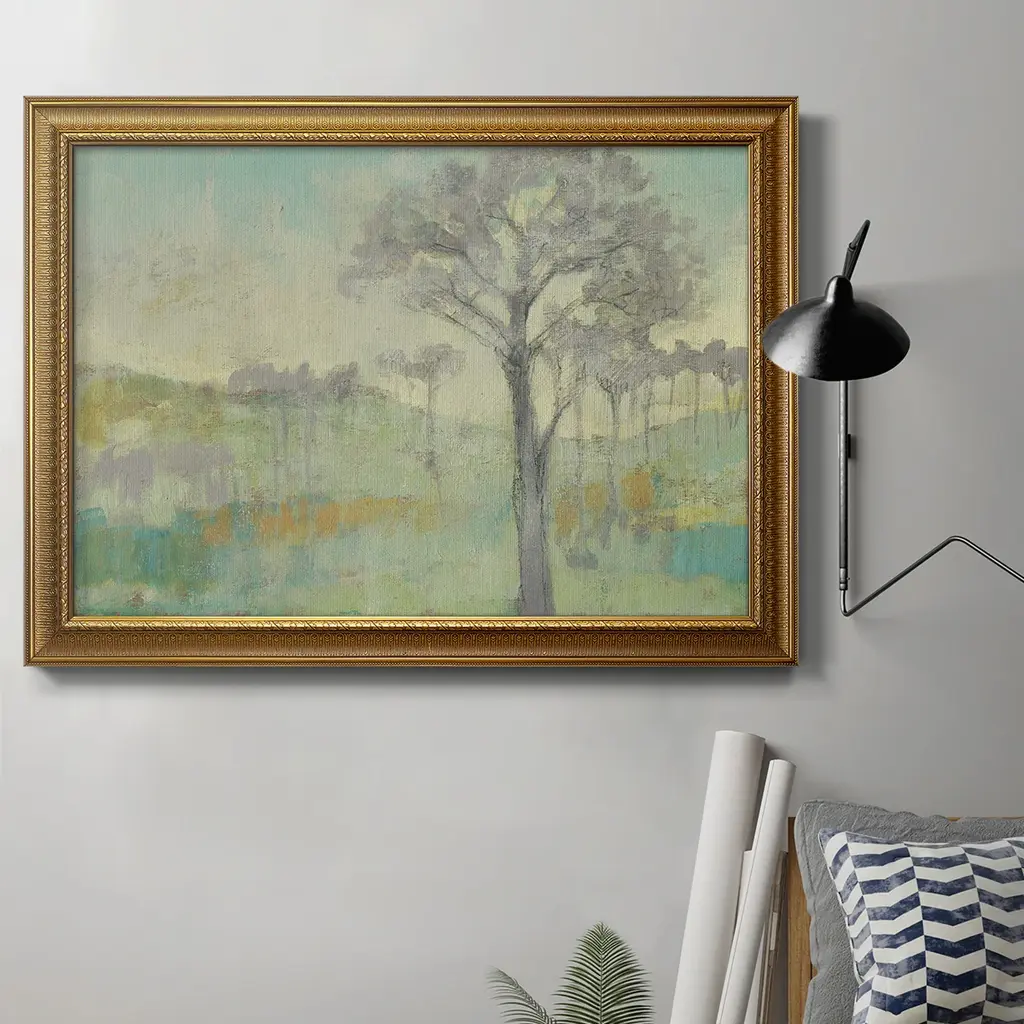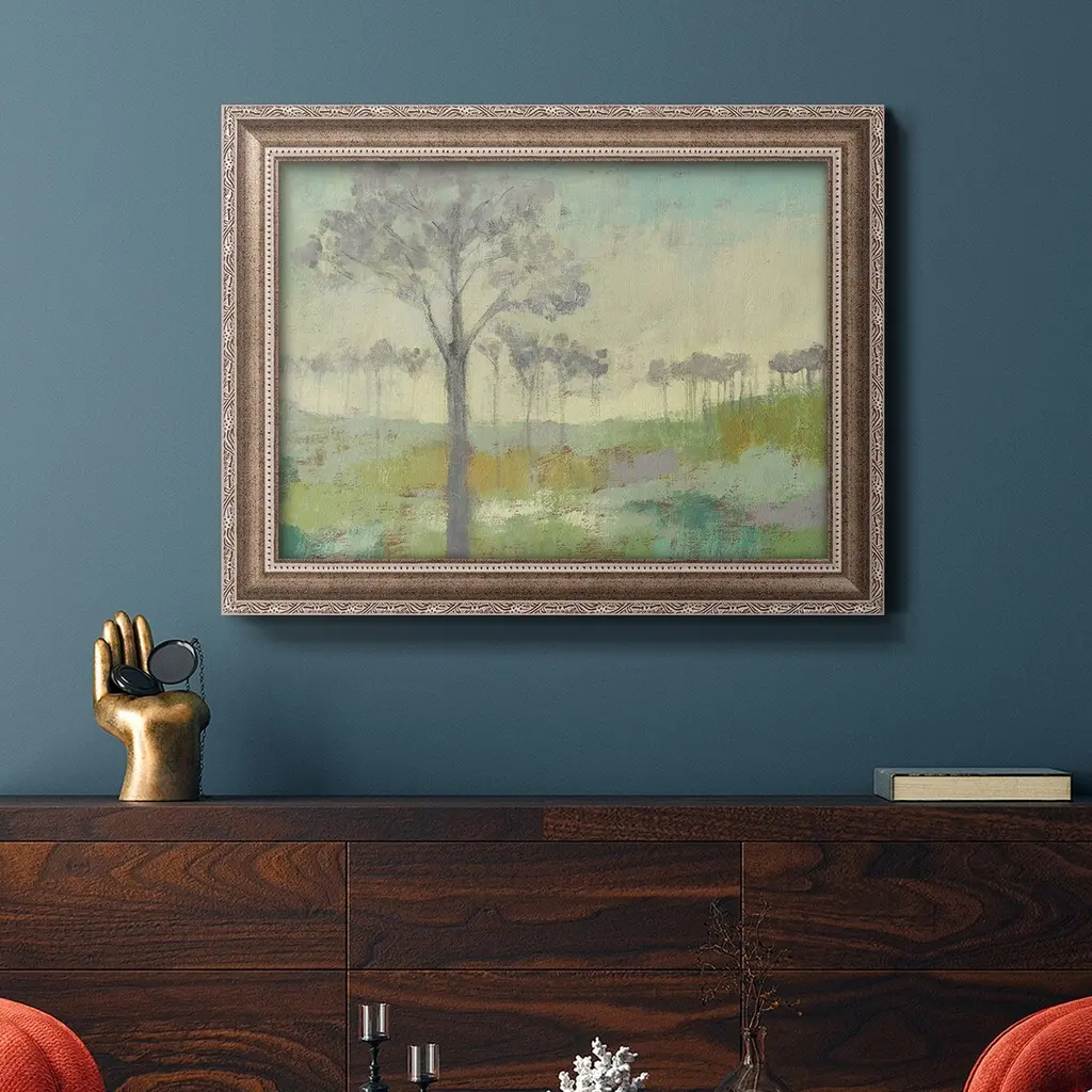 Tree Stand II Premium Framed Canvas- Ready to Hang A Premium Framed Canvas created to last. Framed in distressed wood and available in an array of sizes and colors Featuring a beveled a solid wood stretcher bar, each piece comes ready to hand 3 SIZES AVAILABLE 16''X20'' - Overall Size 18'X27'' - Overall Size 24''x36'' - Overall Size Each piece is made to order. Each piece comes with hanging hardware. Made in the USA Ready to Hang Giclee Paper Print Acrylic Glass Beveled Matt Board