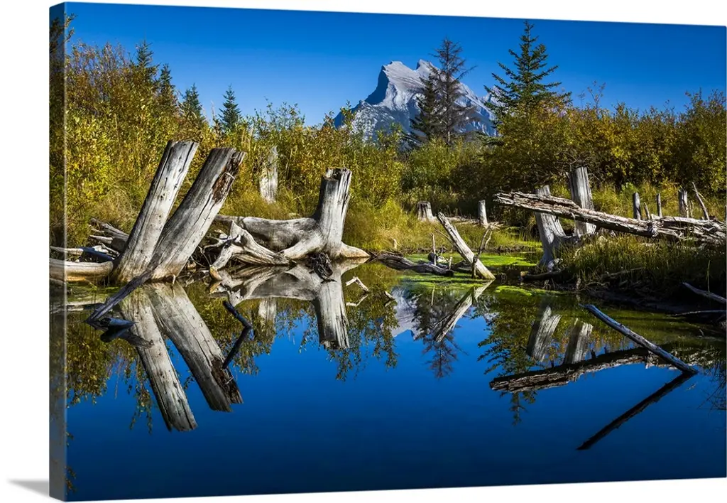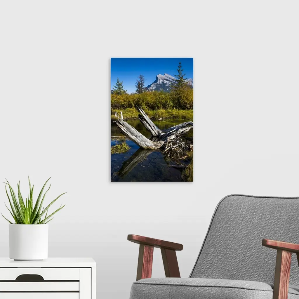 Tree Stump in Vermilion Lakes with Mount Rundle in Background, near Banff, Banff National Park, Alberta, Canada