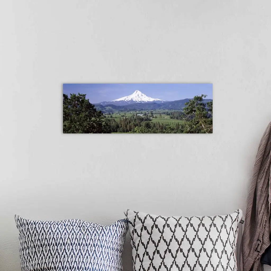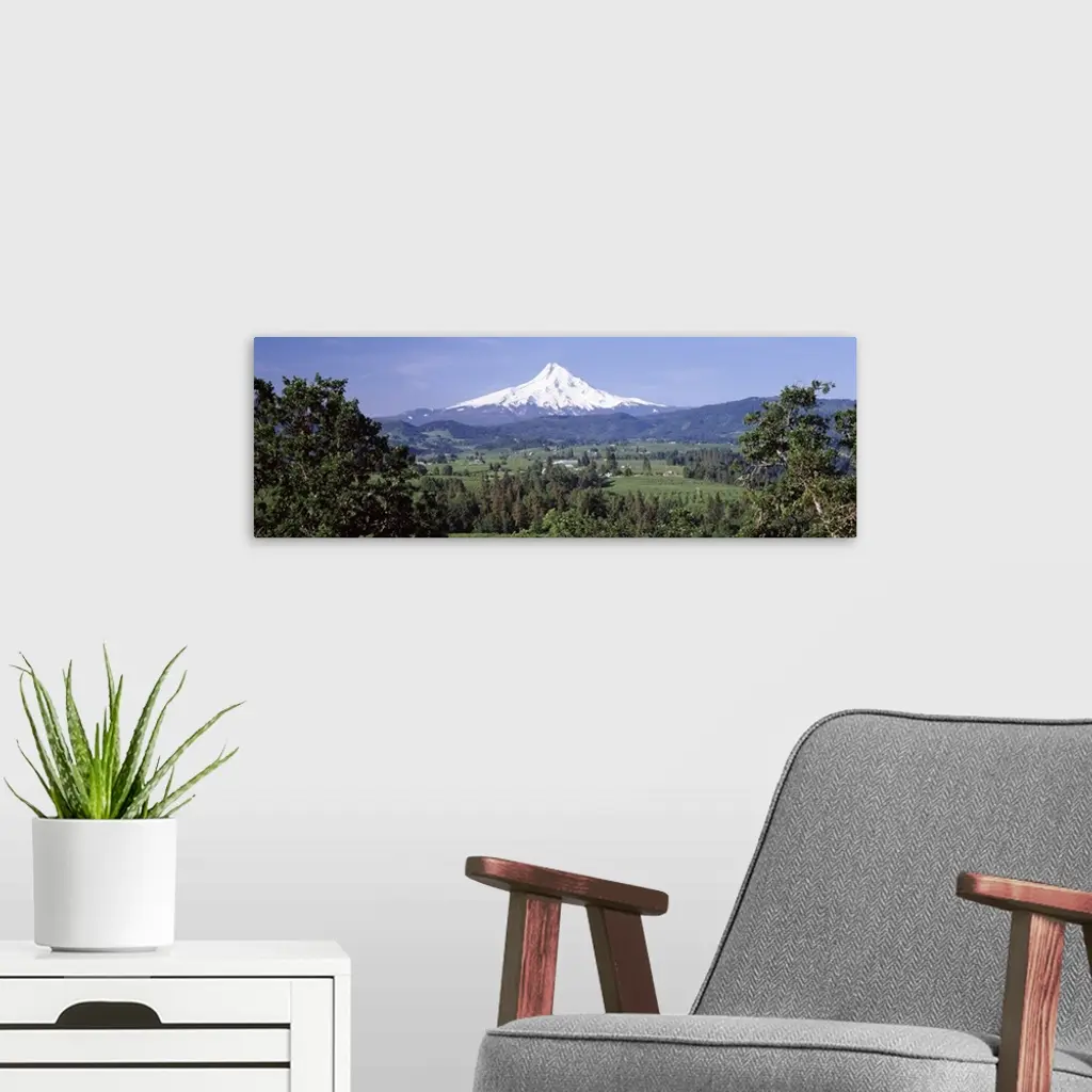 Trees and farms with a snowcapped mountain in the background, Mt Hood, Oregon, wall art for home and office decor. Discover canvas art prints, photos, mural, big canvas art and framed wall art in GreatBigCanvas.com's varied collections.