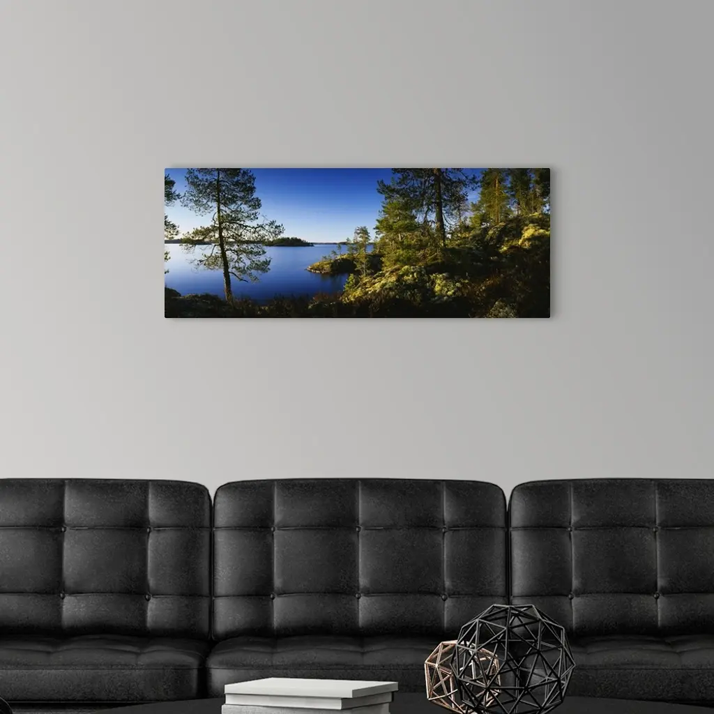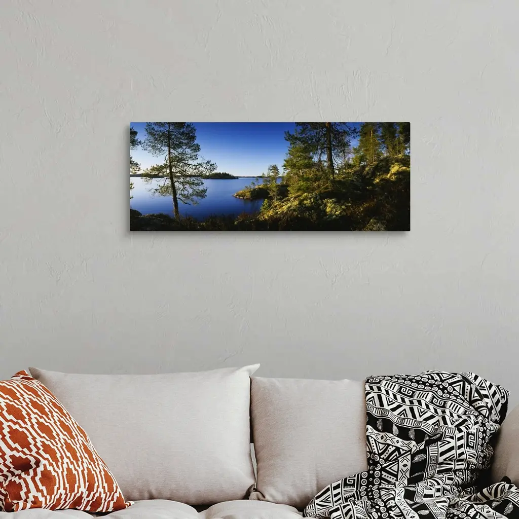 Trees at the lakeside, Lake Saimaa, Puumala, Finland wall art for home and office decor. Discover canvas art prints, photos, mural, big canvas art and framed wall art in GreatBigCanvas.com's varied collections.