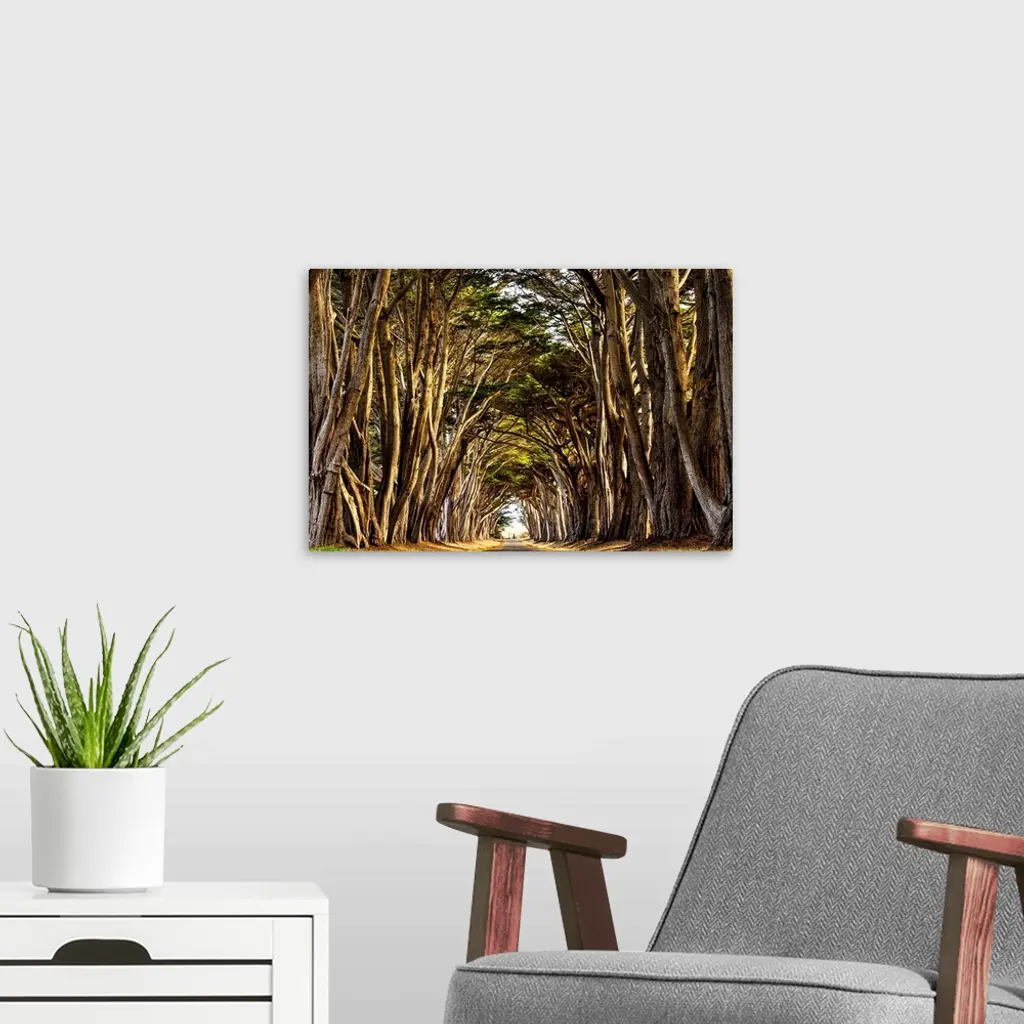Trees on the road to the radio station at Pt. Reyes National Seashore, California.