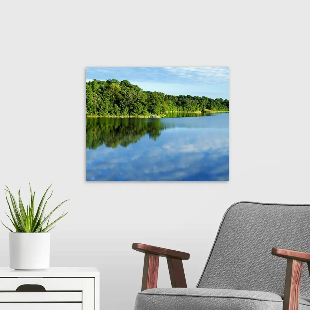 Trees Growing Along Big Creek Lake, Water Reflection, Big Creek Lake State Park, Iowa