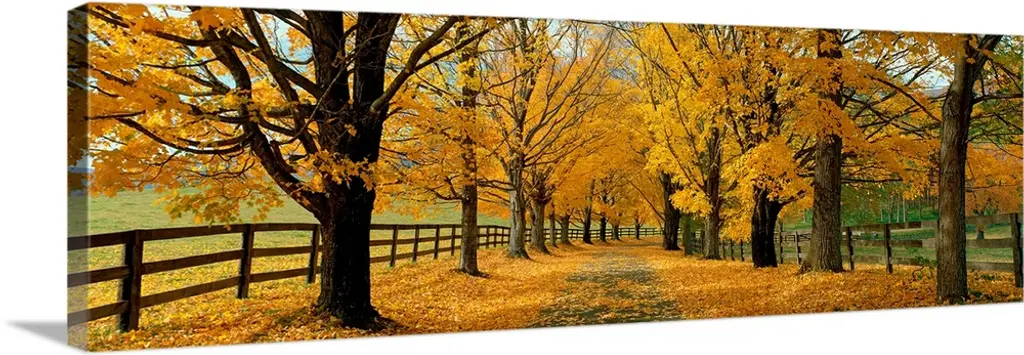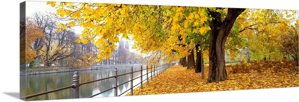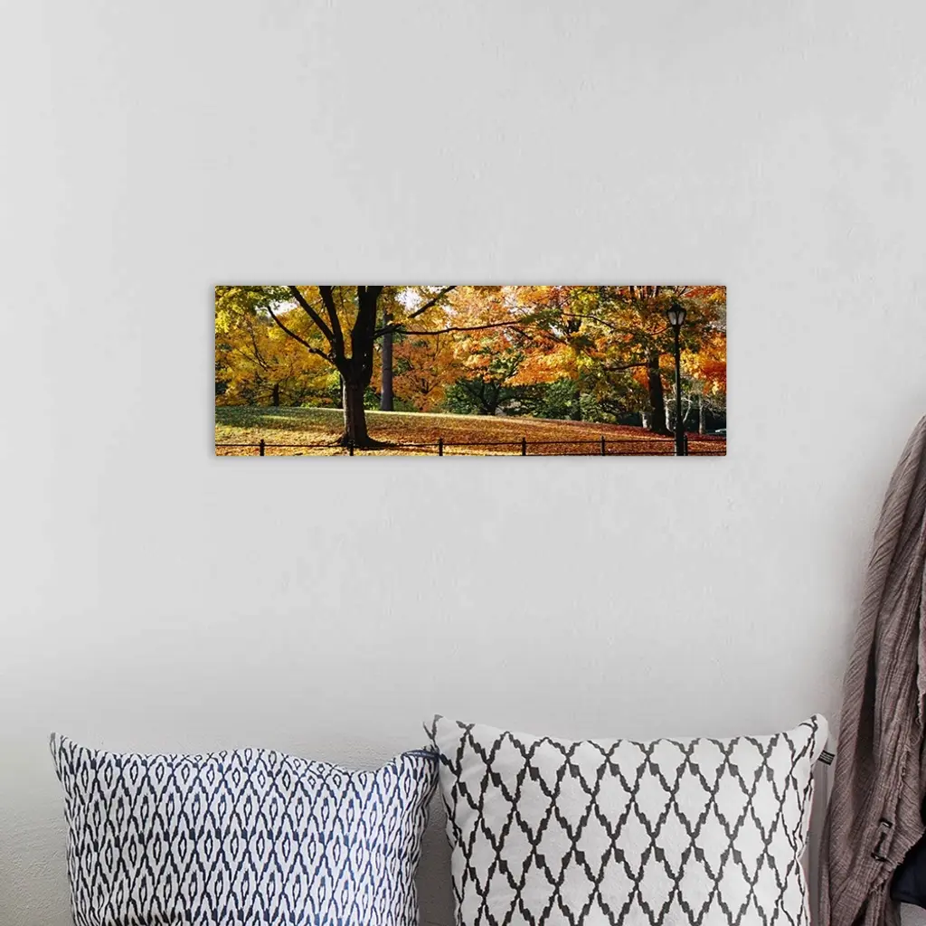 Panoramic photo on canvas of fall foliage covered trees in Central Park.