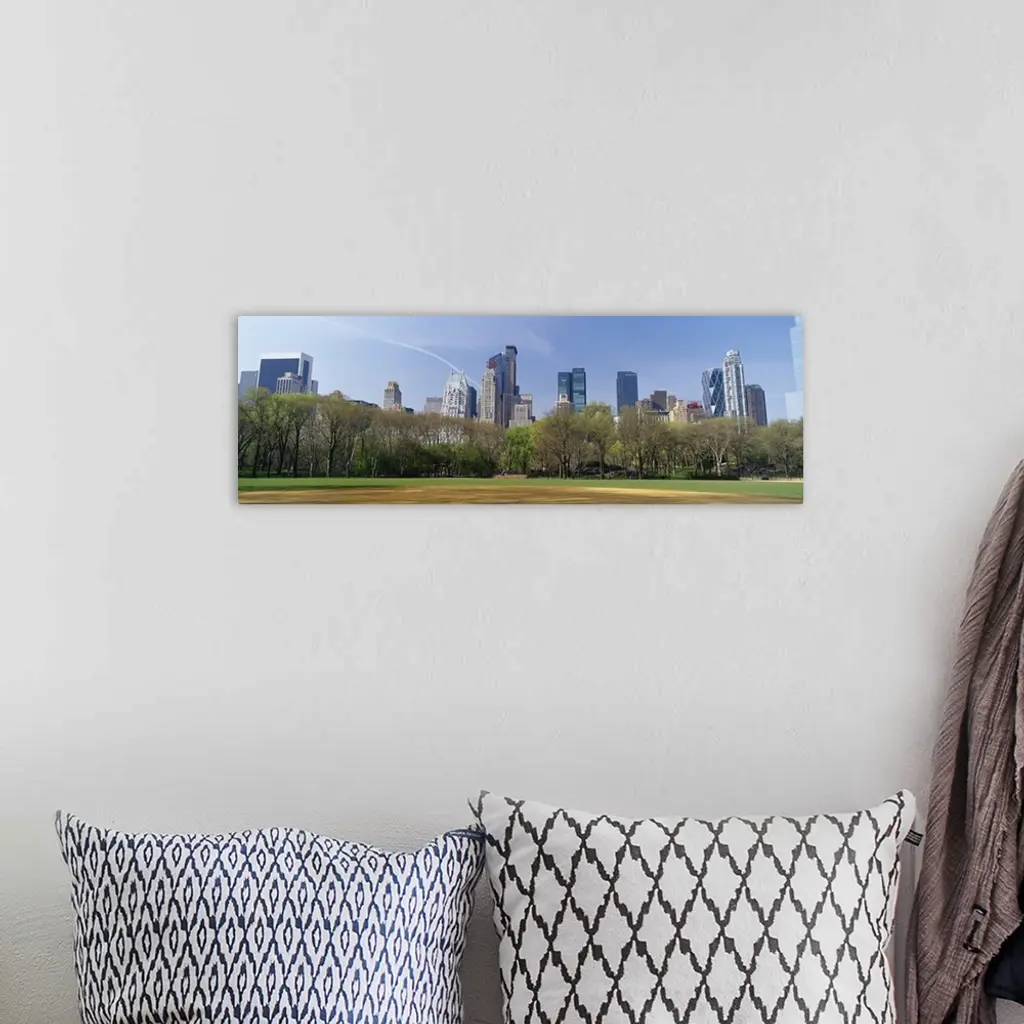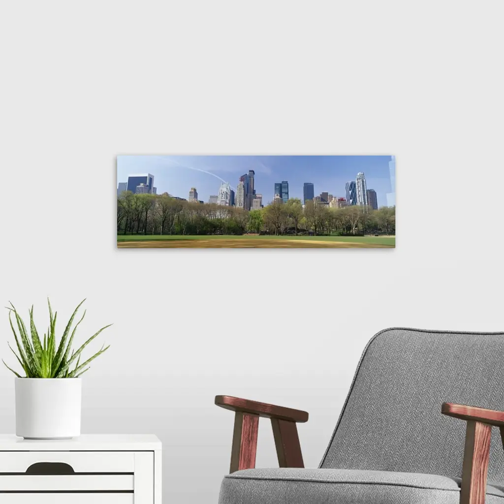 Trees in a park with buildings in the background, Central Park South, Central Park, Manhattan, New York City, New York State wall art for home and office decor. Discover canvas art prints, photos, mural, big canvas art and framed wall art in GreatBigCanvas.com's varied collections.