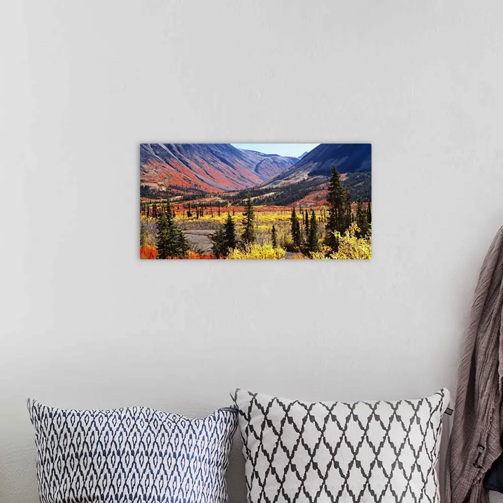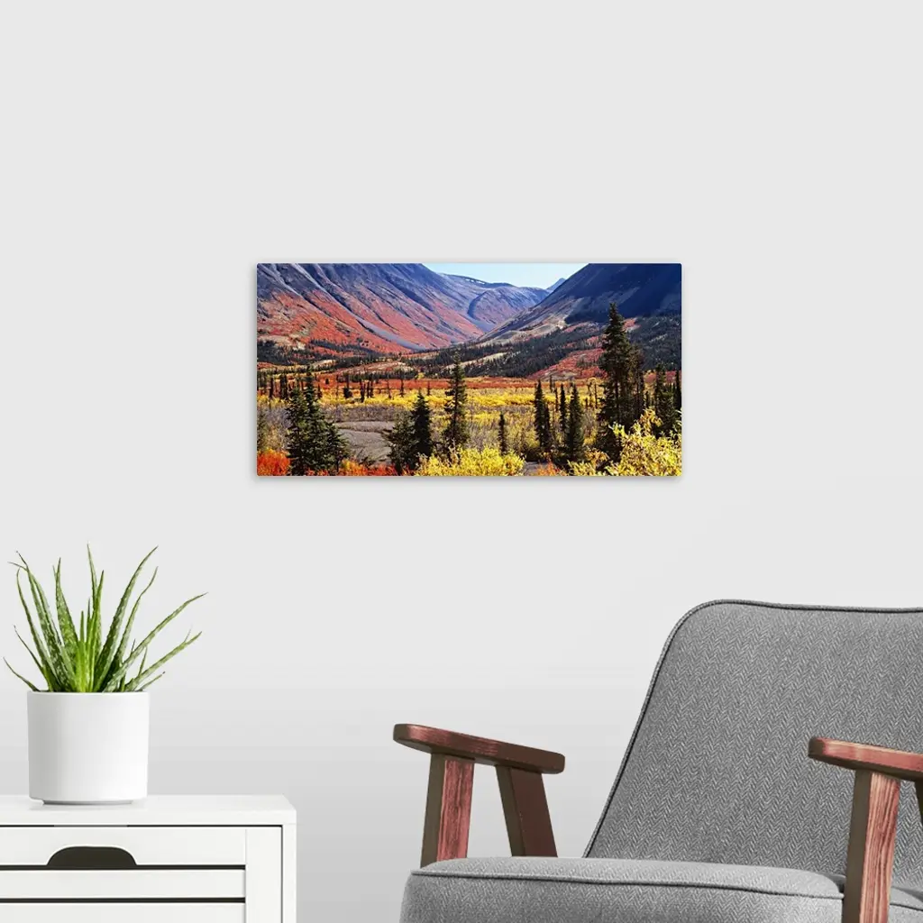 Trees in a valley, Selwyn Mountains, Yukon, Canada wall art for home and office decor. Discover canvas art prints, photos, mural, big canvas art and framed wall art in GreatBigCanvas.com's varied collections.