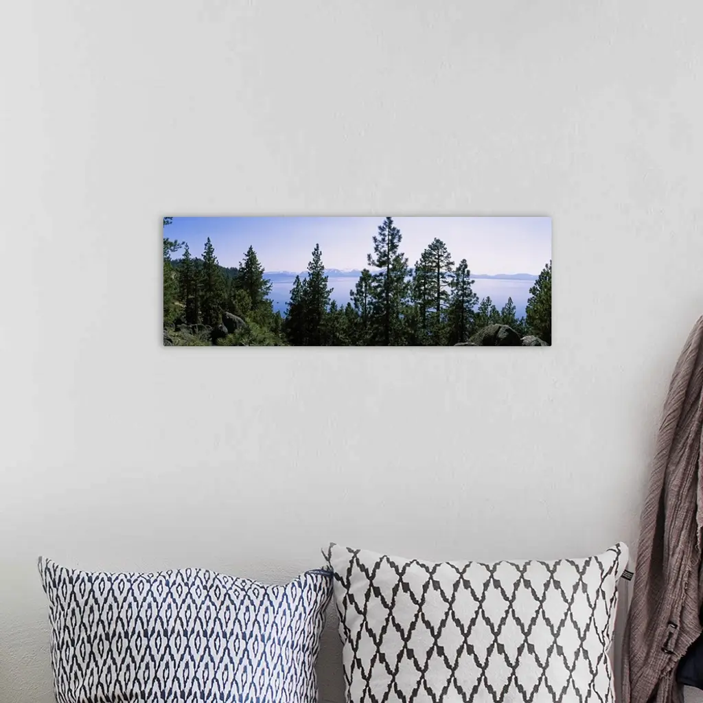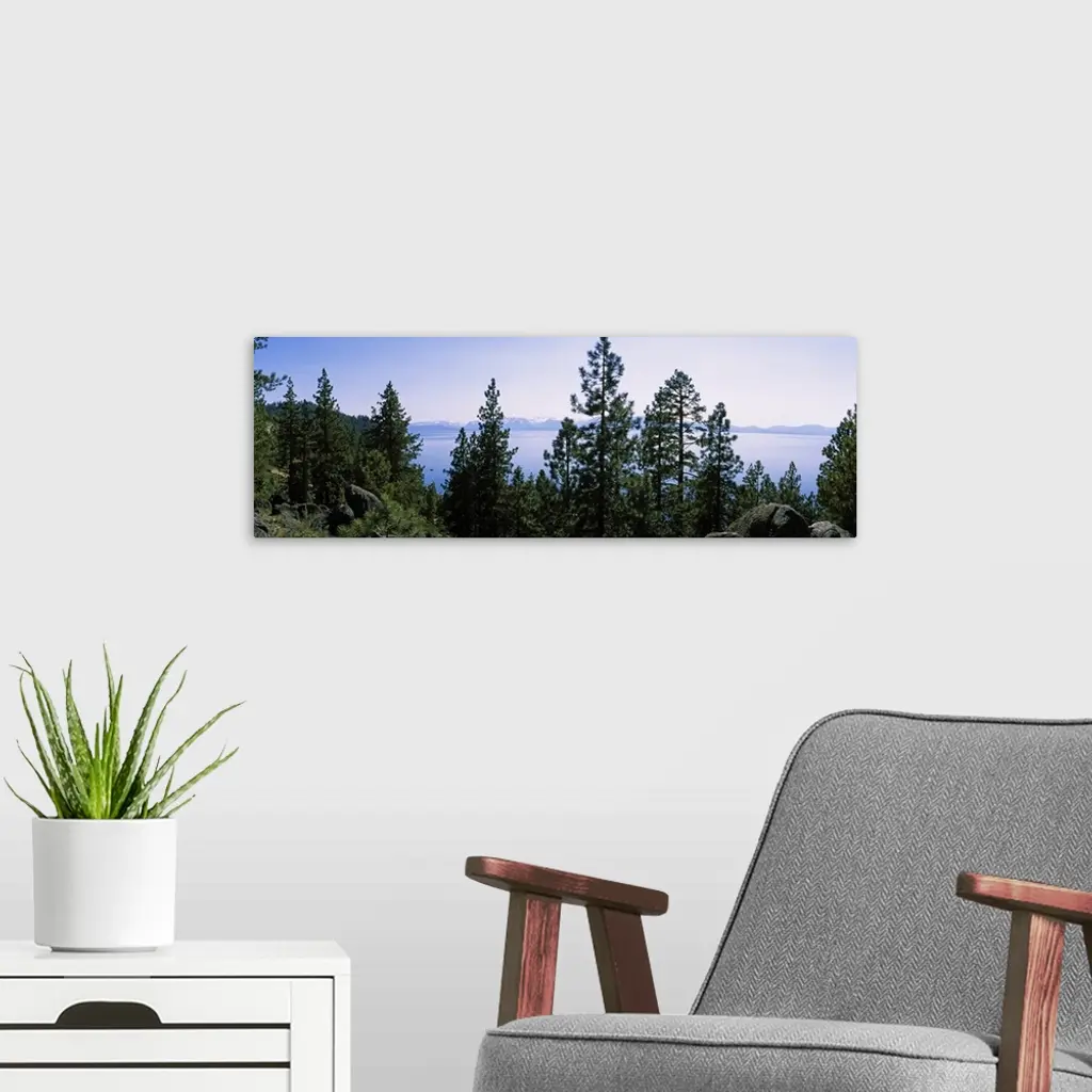 Trees near a lake, Lake Tahoe, California wall art for home and office decor. Discover canvas art prints, photos, mural, big canvas art and framed wall art in GreatBigCanvas.com's varied collections.