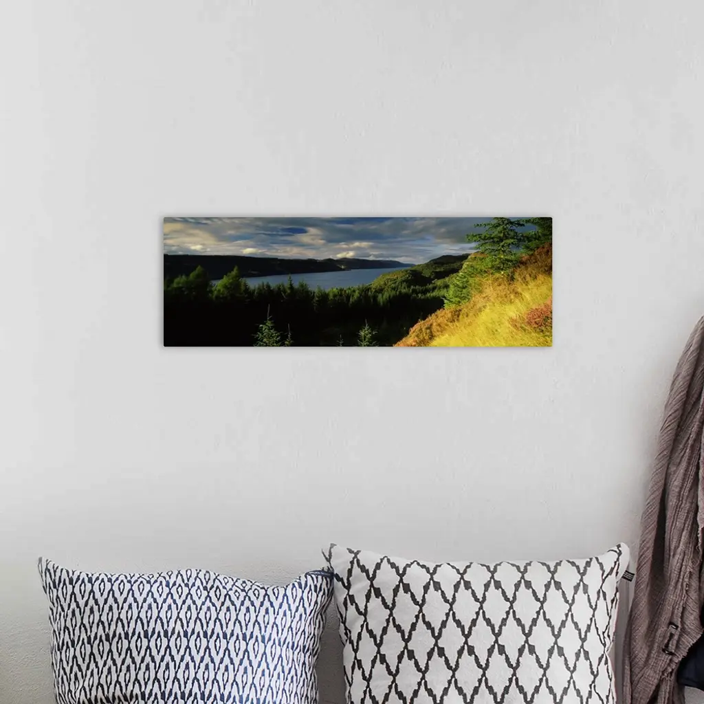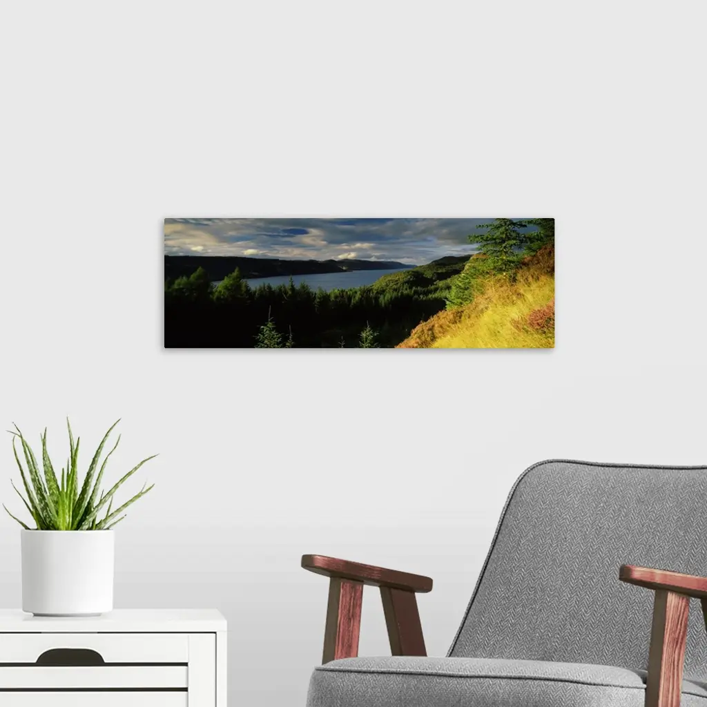 Trees on a landscape Loch Ness Farigaig Forest Inverness shire Highlands Region Scotland wall art for home and office decor. Discover canvas art prints, photos, mural, big canvas art and framed wall art in GreatBigCanvas.com's varied collections.