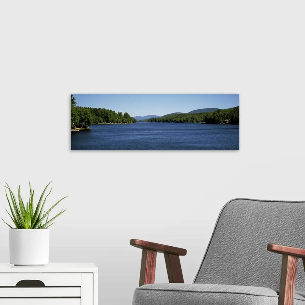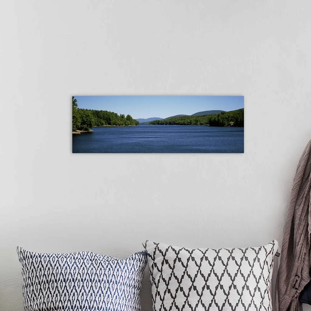 Trees on both sides of a lake, Long Lake, Adirondack State Park, New York State wall art for home and office decor. Discover canvas art prints, photos, mural, big canvas art and framed wall art in GreatBigCanvas.com's varied collections.