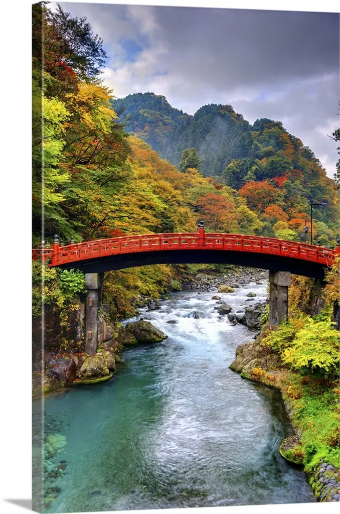 Trees With Autumn Colors Along Bending River In Kyoto With Red Leaves