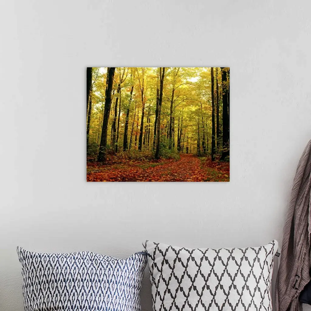 Trees With Autumn Leaves In The Forest wall art for home and office decor. Discover canvas art prints, photos, mural, big canvas art and framed wall art in GreatBigCanvas.com's varied collections.