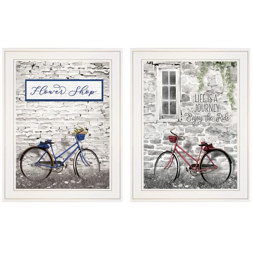 Trendydecor4u Contemporary "Romantic Bicycles" 2-Piece Vignette By Lori Deiter - Black