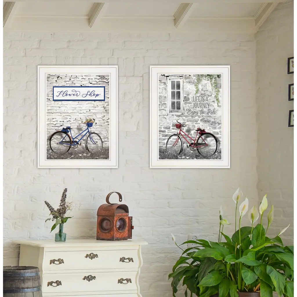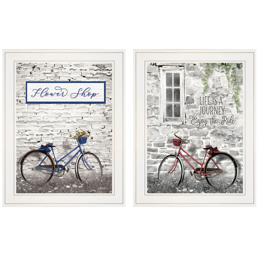 Trendydecor4u Contemporary "Romantic Bicycles" 2-Piece Vignette By Lori Deiter - White