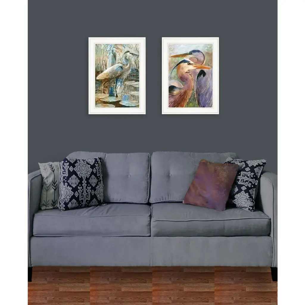 Trendydecor4u Traditional "Blue Heron Duet" 2-Piece Vignette By Stellar Design Studio - Blue, Tan, Brown - White