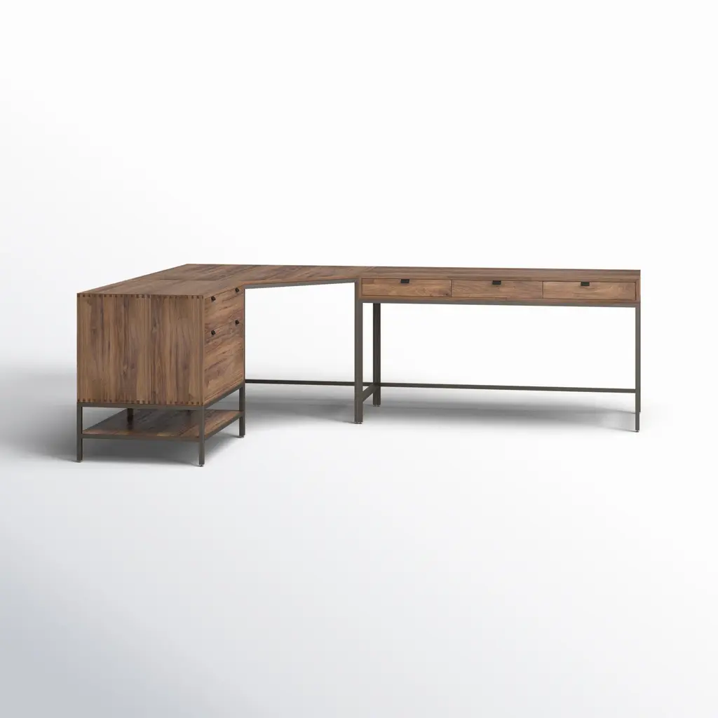 Inspired by clean mid-century design, greyish auburn poplar offers plenty of desk storage by way of three spacious drawers. Metal-secured leather pulls add a textural element of surprise. File drawer for handy storage of legal and letter sized documents. Cabinet can be styled on either side of desk for great flexibility in any space.