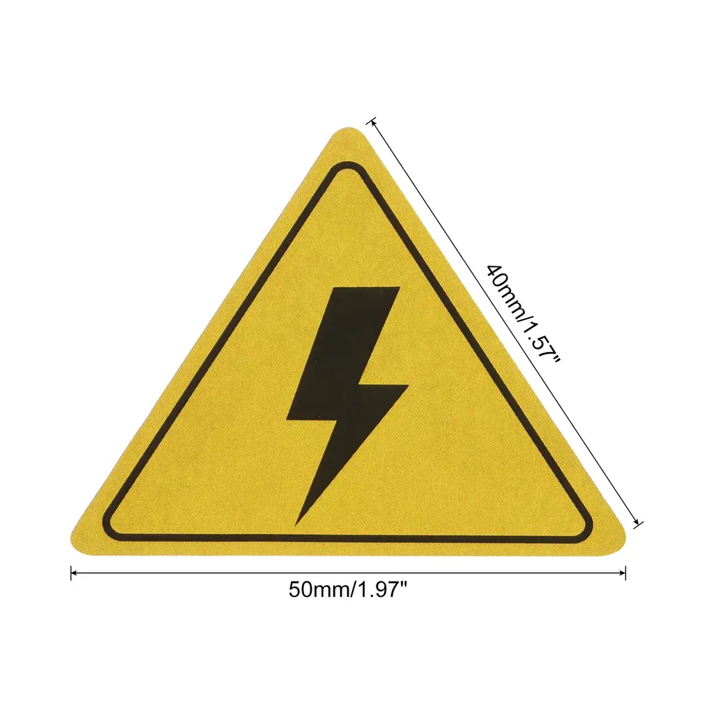 What is this?Small-sized electrical shock risk warning sign to indicate the danger of electric shockWhat will I get?Size: 50mm x 40mm/1.97 inch x 1.57 inch(L*W); Pack of 10 Pcs x warning signIs there any advantages of the product?Made of vinyl material, bright color printing, endurable and with waterproof surface, Suitable for both indoor and outdoor useHow to use it?Self-adhesive, easy to use, just peel and stickWhat should I notice?Due to the light problem, there is a slight color difference in the picture shooting