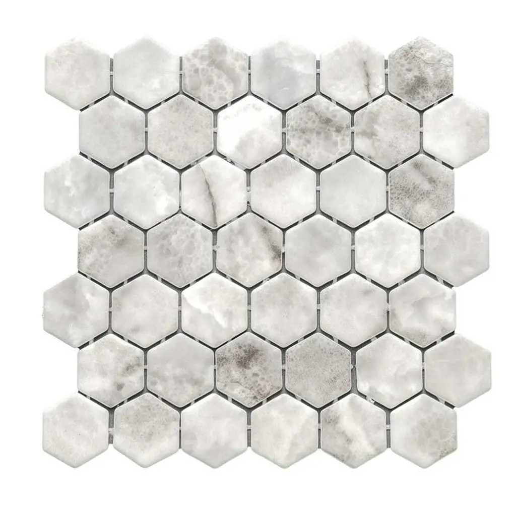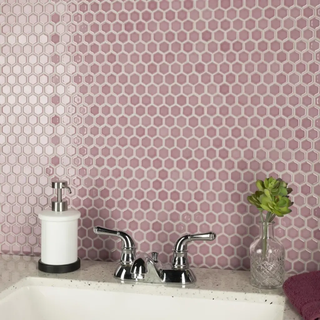 Lending a unique touch of color, this porcelain mosaic floor, and wall tile instantly elevate spaces through a refreshing dose of vivid geometric design. As an innovative twist on the classic hexagon, this mosaic is comprised of hexagonal chips with a smooth surface. Glossy hexagons are arranged on an interlocking mesh to create a seamless installation. This minimalistic geometric porcelain mosaic is unique yet simplistic enough to integrate into any design, ranging from traditional-style renovations to modern home projects. Its impervious and frost-resistant features make this an ideal tile for both indoor and outdoor residential use, including backsplashes, bathrooms, showers, and kitchens. Tile is the better choice for your space. This tile is made from natural ingredients, making it a healthy choice as it is free from allergens, VOCs, formaldehyde, and PVC.