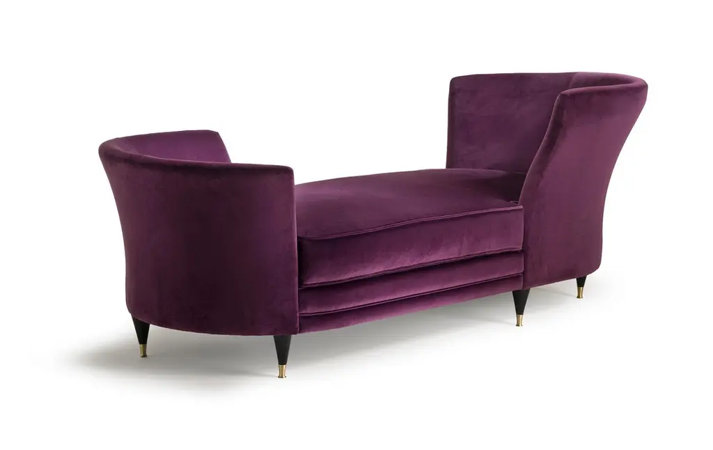 Indulge in the artful blend of comfort and sophistication with our Triclinia chaise longue—an embodiment of Italian craftsmanship that redefines lounging elegance. This handcrafted masterpiece plays with contrasts, alternating the sinuous embrace of a large sitting cushion with the clean lines that define the two backrests.The unique design creates an intimate vis-à-vis facing position, inviting moments of connection and relaxation. Supported by slender wooden feet, the Triclinia boasts a feminine and graceful silhouette, adding an air of refinement to any space.Choose between the dark matt walnut finish or the chic matt black lacquered finish to tailor this exquisite piece to your aesthetic preferences. Personalize further by selecting the fabric color that resonates with your style.Explore our curated collection of hand-made Italian products and elevate your lounging experience with the Triclinia chaise longue—an icon of comfort and design, meticulously crafted to bring a touch of Italian elegance into your home.This item has been individually handmade by our master craftsmen. Any irregularities or natural blemishes should not be misconstrued as flaws but as integral elements that make each handmade piece unique.