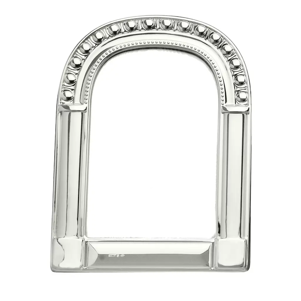This elegant frame is made from 925 sterling silver: a thoughtful gift that will be cherished for years to come. Its arched silhouette features a triple ridged texture, fitted with exclusive Schiavon logo clips. The Triple Ridged Arched Frame comes complete with a solid mahogany back with a smooth finish and moiré fabric interior.
