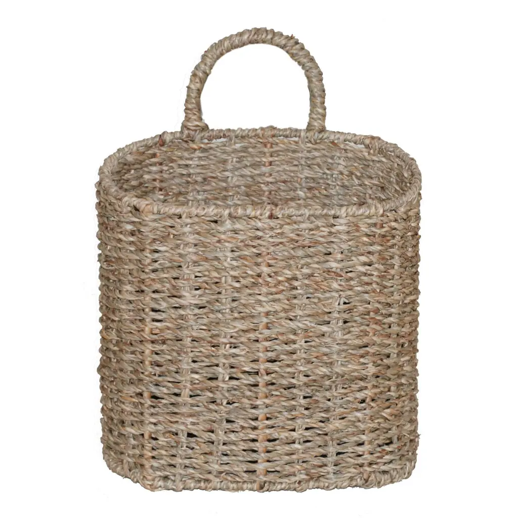 Add extra storage and eye-catching dimension to any room with our handsome basket wall decor, handcrafted in Vietnam of sturdy seagrass. Outfitted with a loop handle for easy hanging, this wall storage solution is available in two sizes ideal for organizing papers, elevating plants and tidying up in elegant, organic style.