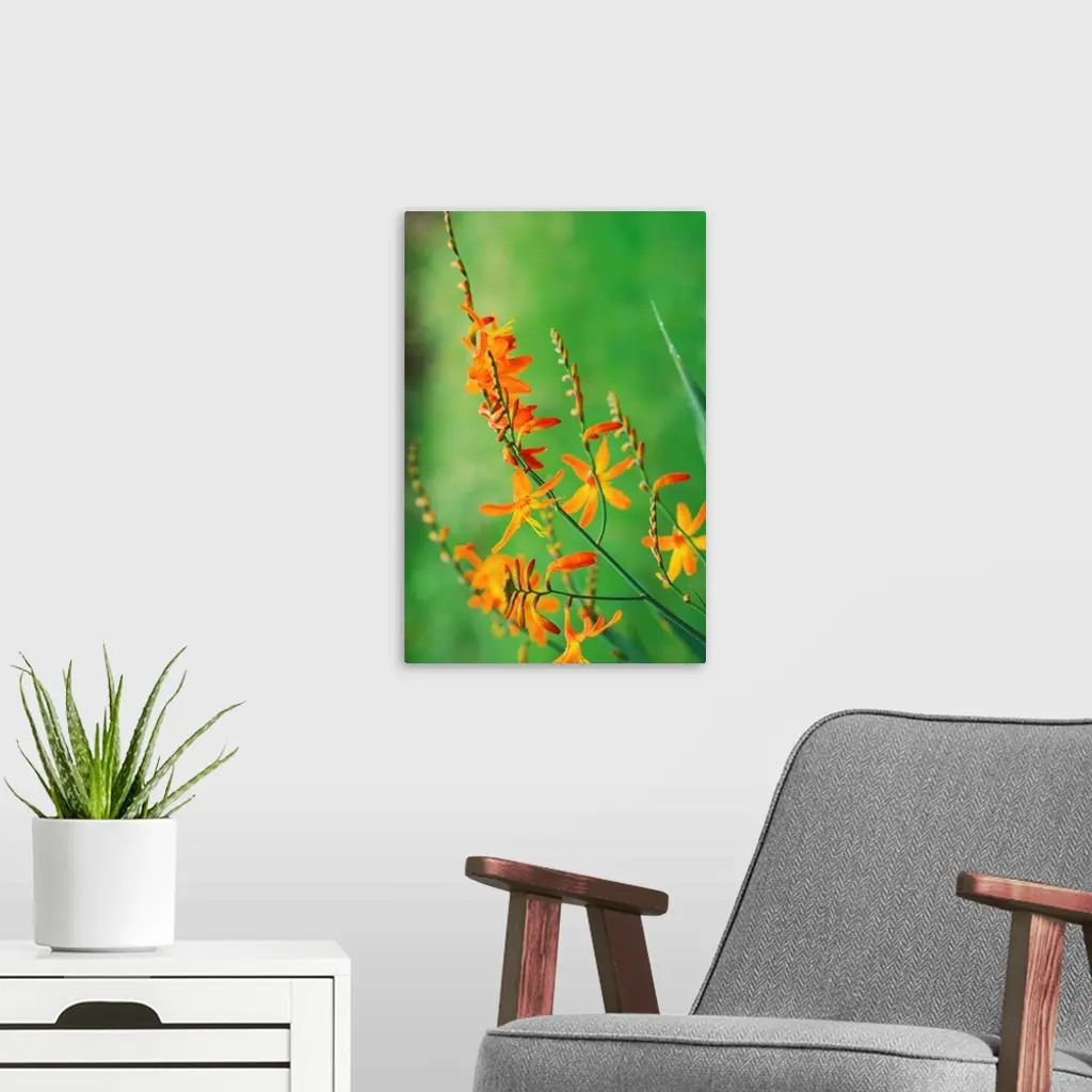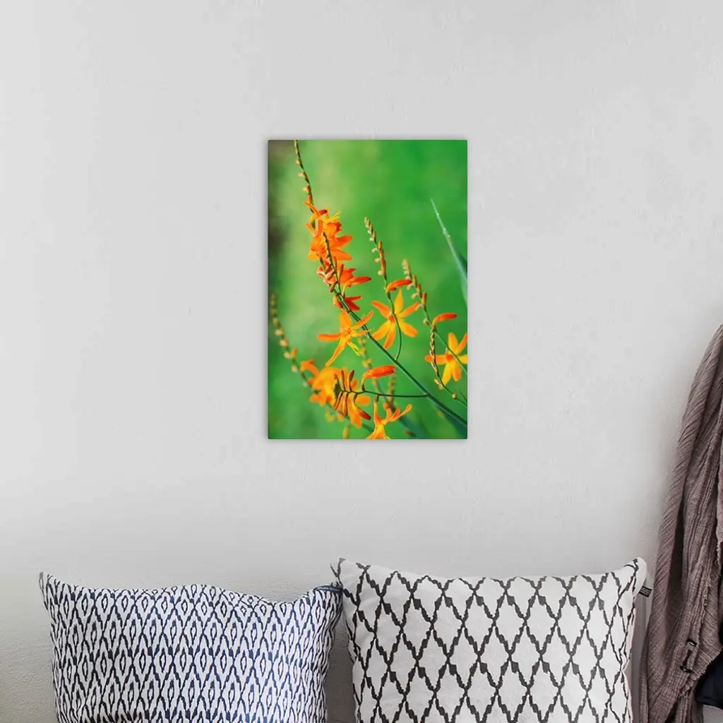 Tritonia Crocosmiflora Flowers, Growing In The Wild, Blurry Green Background wall art for home and office decor. Discover canvas art prints, photos, mural, big canvas art and framed wall art in GreatBigCanvas.com's varied collections.