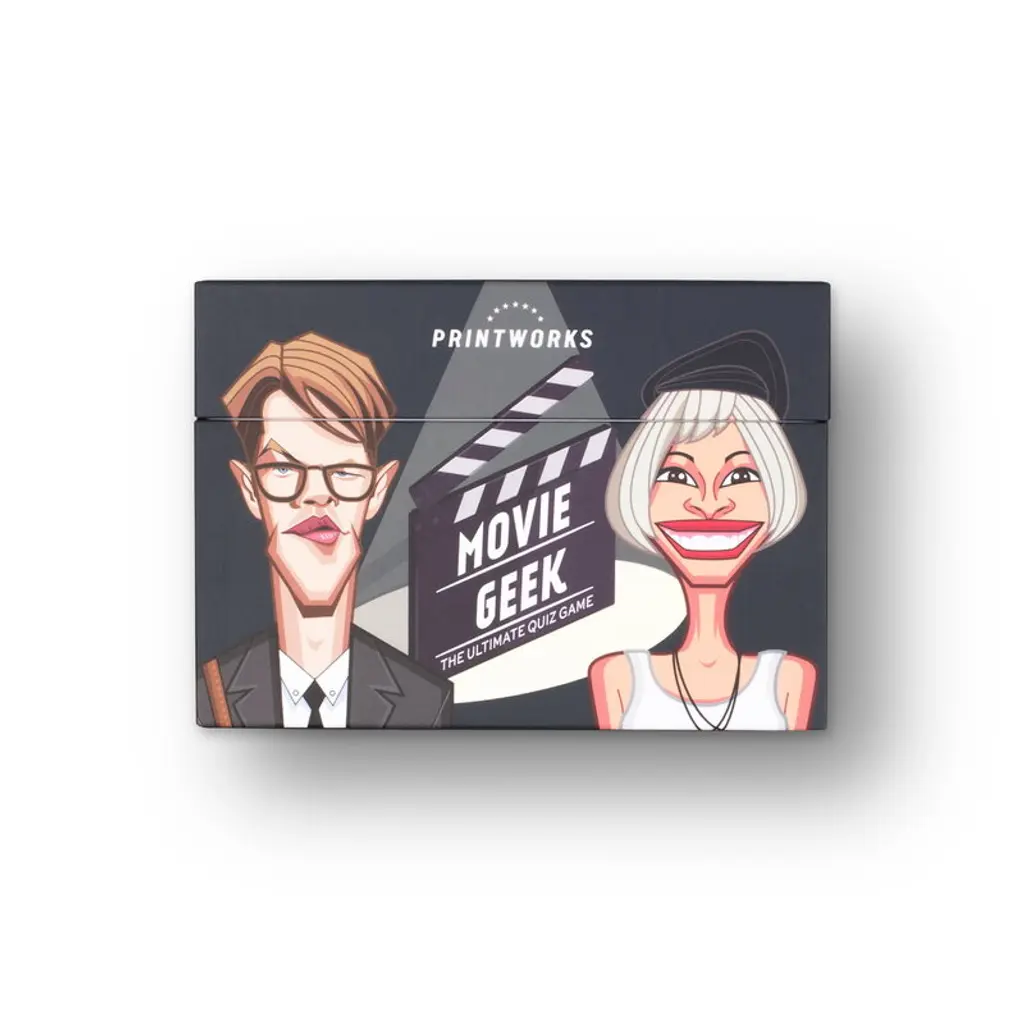 Printworks' Movie Geek game offers challenges for both single cinema-goers and hardcore film enthusiasts. The rules of the game are simple: draw a card from the deck and challenge your opponent, who must know the movie in which the character on the card appears. If they fail, the card is returned to the deck; but if they succeed, they get a chance to earn extra points by answering the following tricky questions about the film. Movie Geek is part of the Printworks' Trivia Game series. The collection includes memory games for culture and geography lovers alike. The games are packaged in a stylish box and the cards are printed on durable, acid-free paper. The playful board games are a great gift idea and a fun way to spend time together with friends and loved ones. Let the games begin!