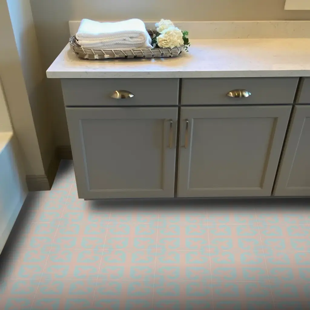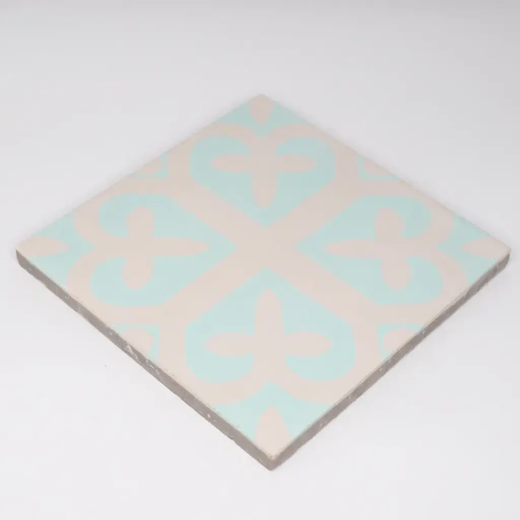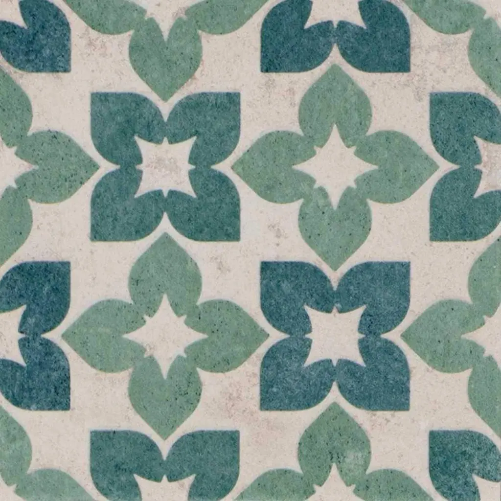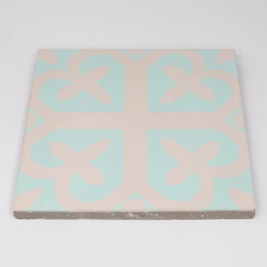 Trivoli is an airy cement tile. It's warm gray and mint designs reflect a calm peace while adding a welcoming traditional feel. It is certain to flourish in your home.