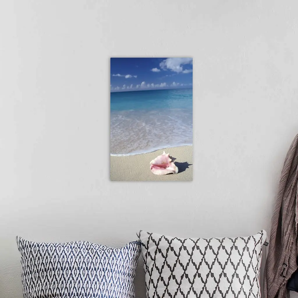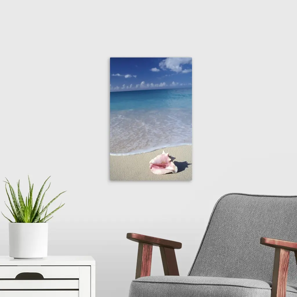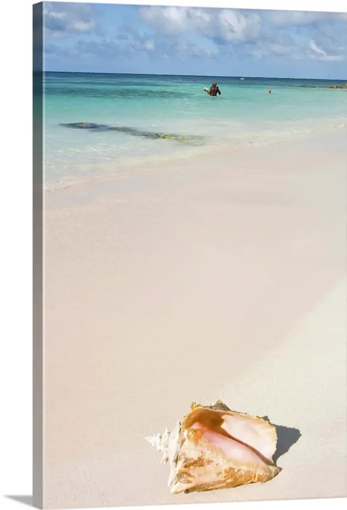 Tropical Caribbean, Grenada, Grand Anse Beach, Conch Shell At Surf's Edge