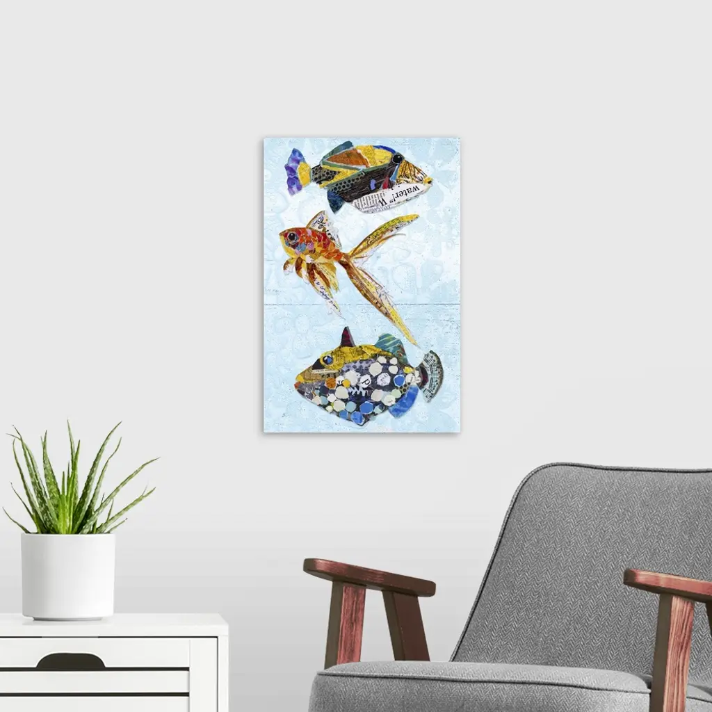 Tropical Fish Collage I wall art for home and office decor. Discover canvas art prints, photos, mural, big canvas art and framed wall art in GreatBigCanvas.com's varied collections.