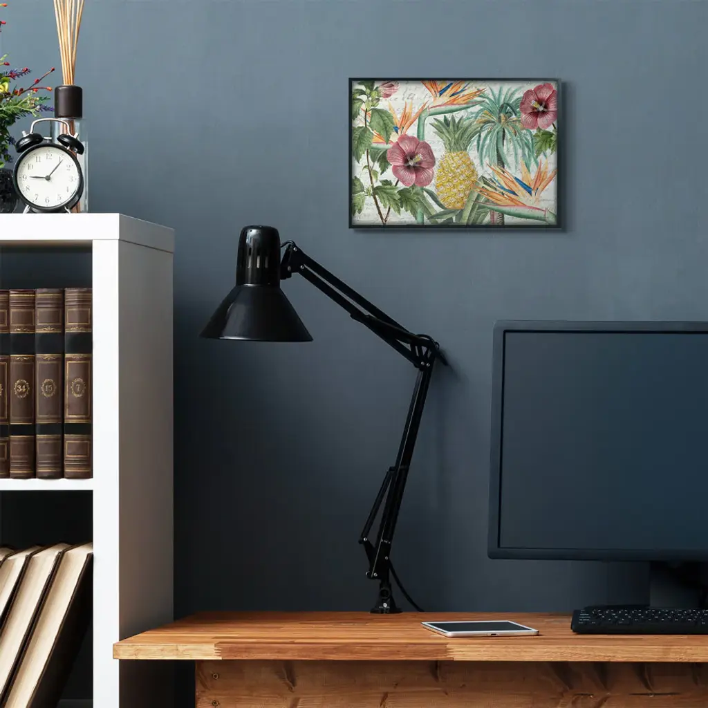 Tropical Flower Pineapple Wood Texture Design, 11"x14"
