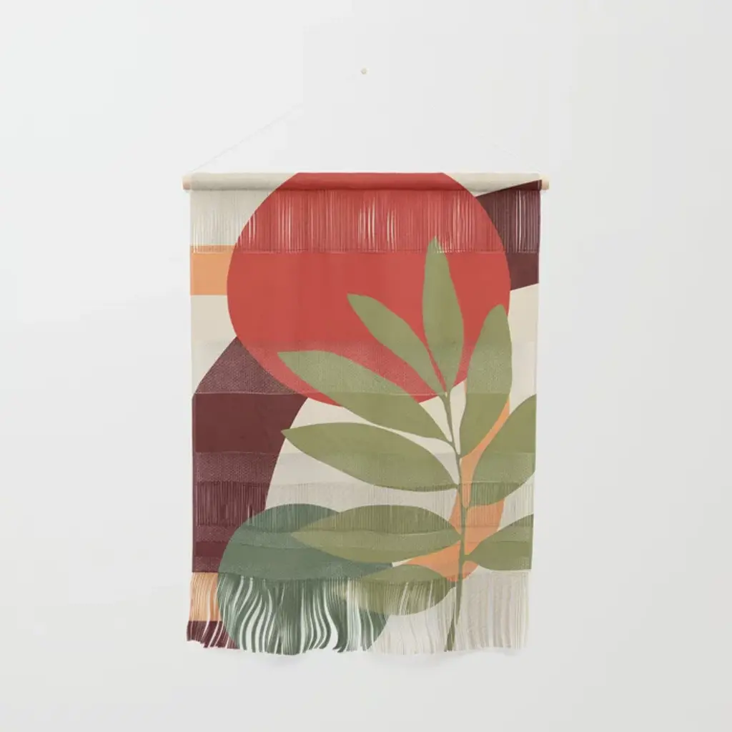 Tropical Forest Sunset / Mid Century Abstract Shapes Wall Hanging